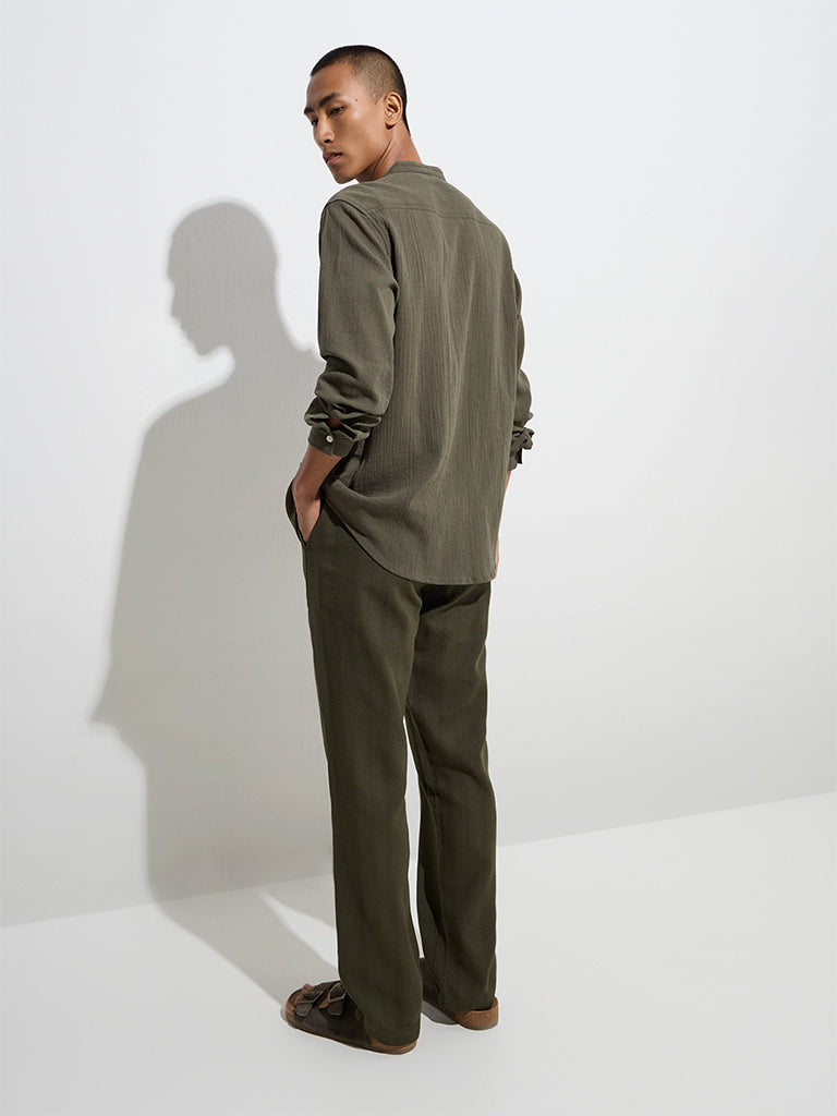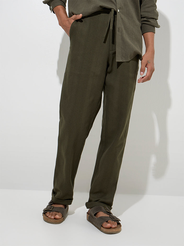 ETA Olive Knit-Textured Relaxed-Fit Mid-Rise Cotton Chinos