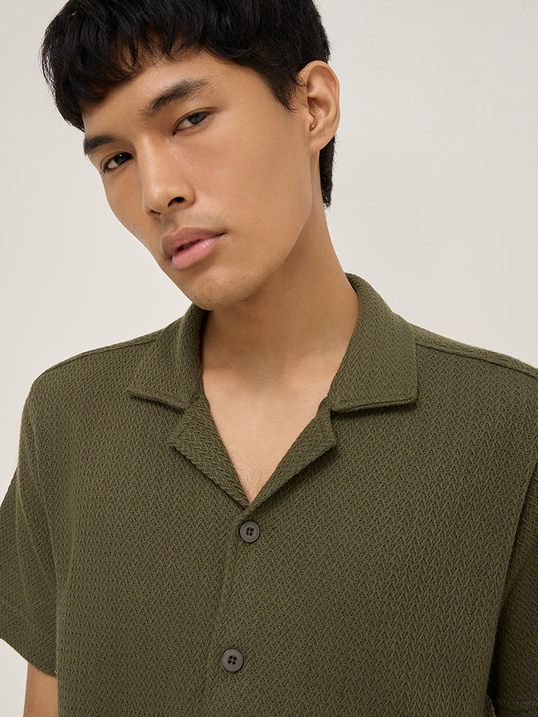 ETA Olive Knitted Relaxed-Fit Cotton-Blend Shirt
