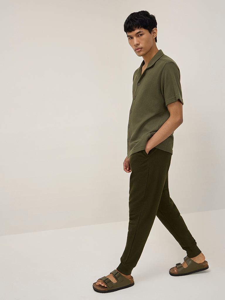Be the first to review “ETA Olive Knitted Relaxed-Fit Cotton-Blend Shirt”