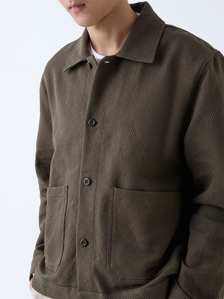 ETA Olive Textured Relaxed-Fit Cotton Jacket