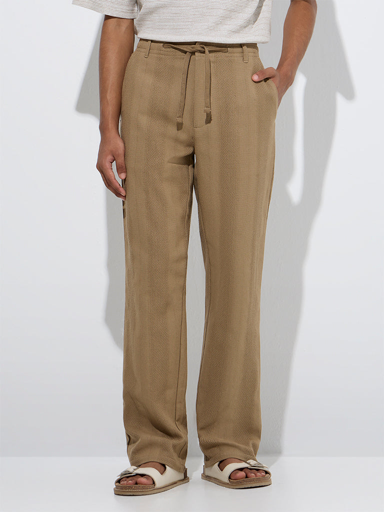 ETA Taupe Self Relaxed-Fit Mid-Rise Cotton-Blend Chinos