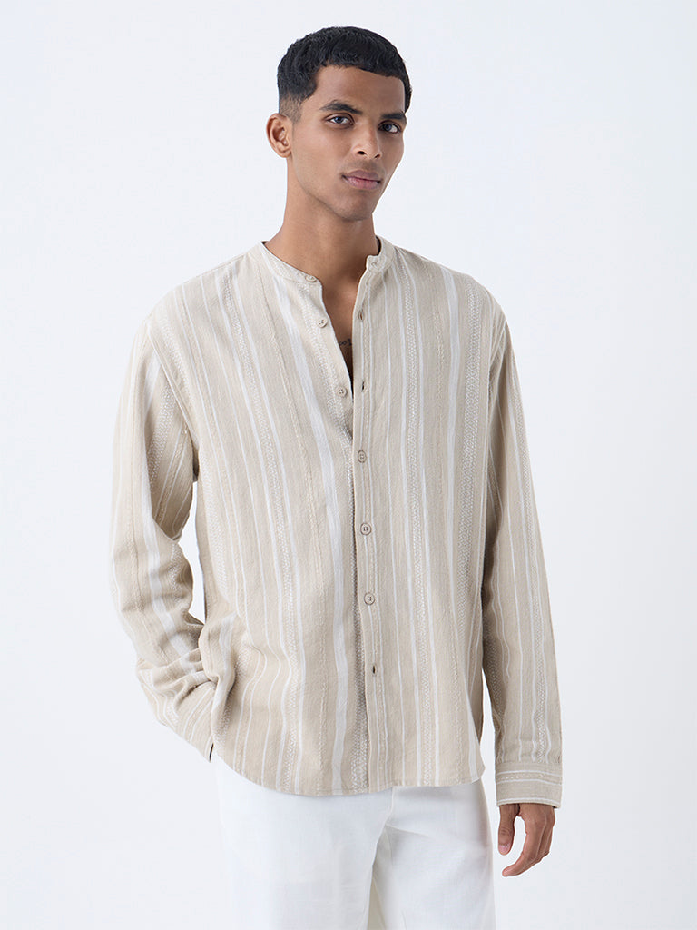 ETA Taupe Striped Relaxed-Fit Cotton Shirt