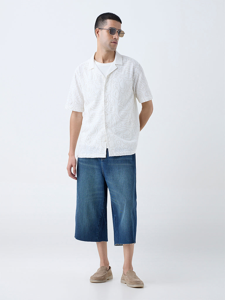 Inspired by The Geoflow – inspired by nature’s curves and crafted geometry. flowing into modern design. this white shirt is part of the Young New Gamechanger initiative by Westside. It’s an artistic creation by Harshita. a rising talent from NIFT Bengaluru. Crafted from pure cotton. this shirt stands out with its intricate all-over abstract embroidery. The relaxed fit. notched collar. and short sleeves offer a comfortable yet stylish silhouette. while the front button placket completes this versatile piece. making it a perfect addition to your contemporary wardrobe.