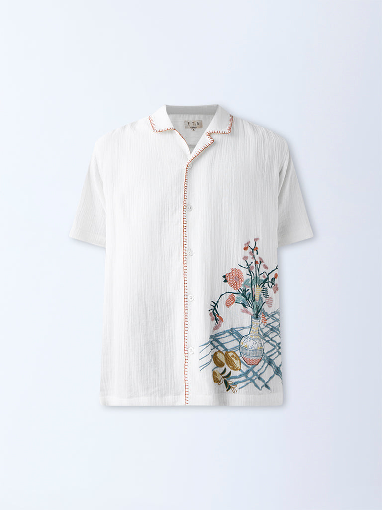 Be the first to review “ETA White Embroidered Resort-Fit Cotton Shirt”