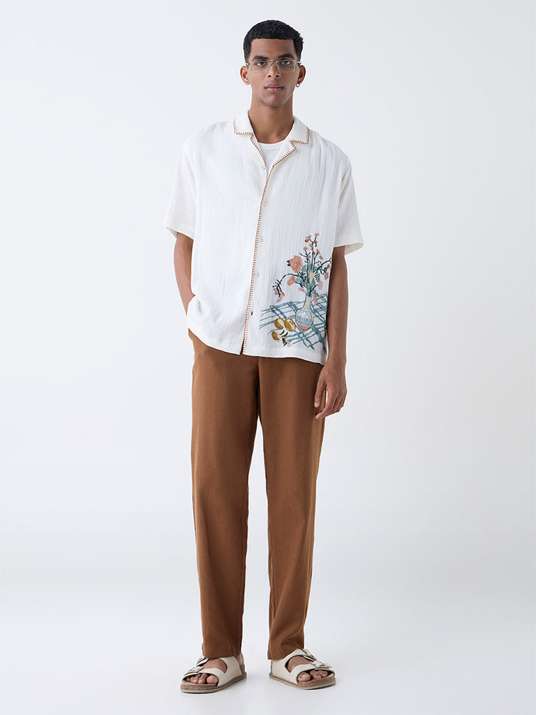 ETA White Embroidered Resort-Fit Cotton Shirt