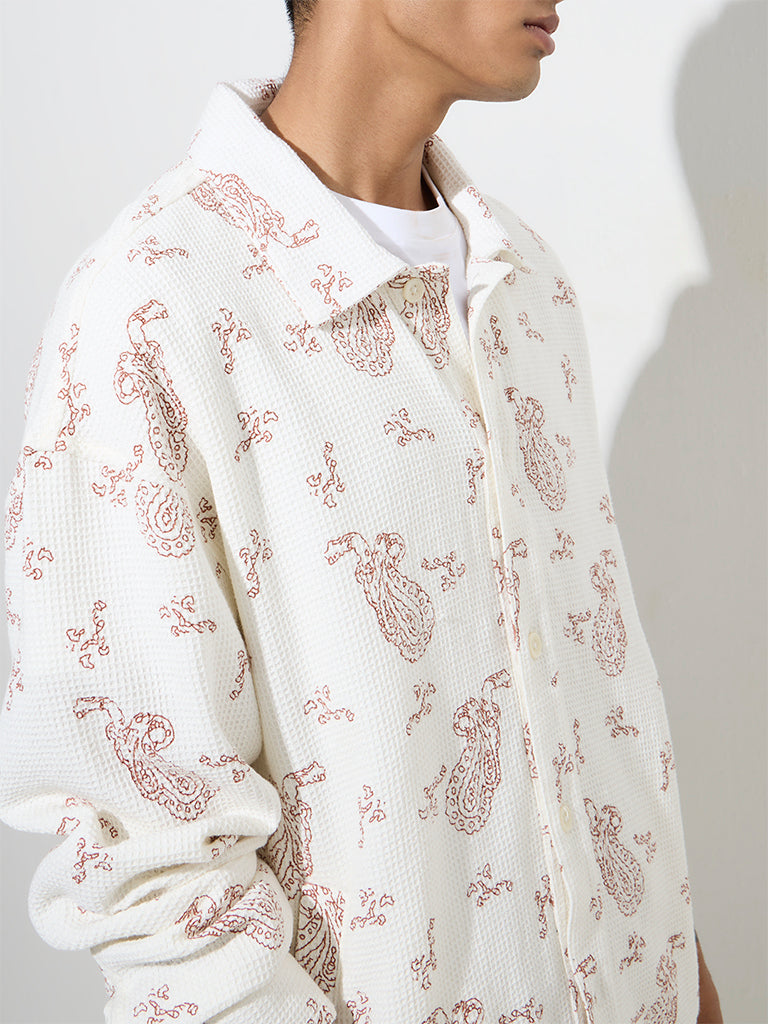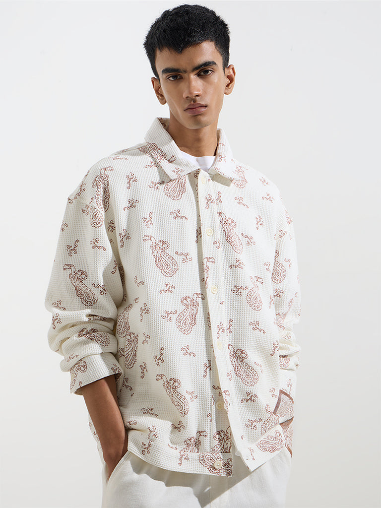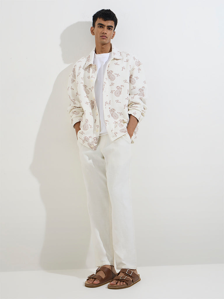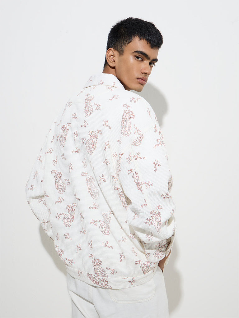 ETA White Paisley Design Relaxed-Fit Cotton Jacket