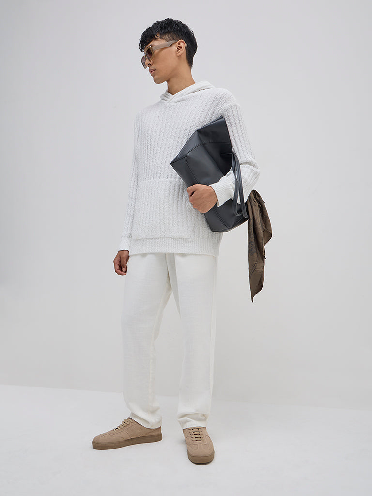 ETA White Ribbed-Textured Relaxed-Fit Hoodie