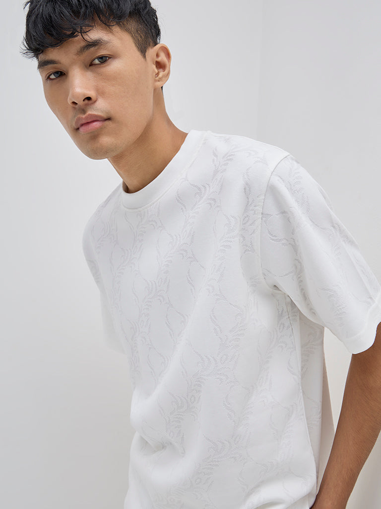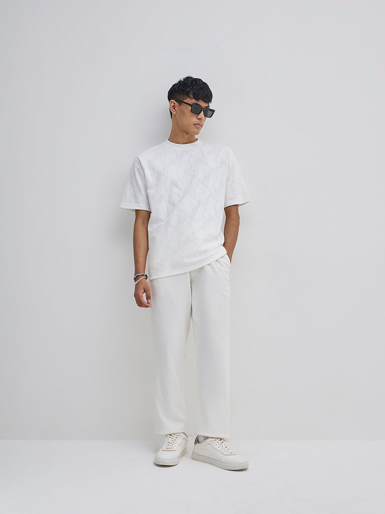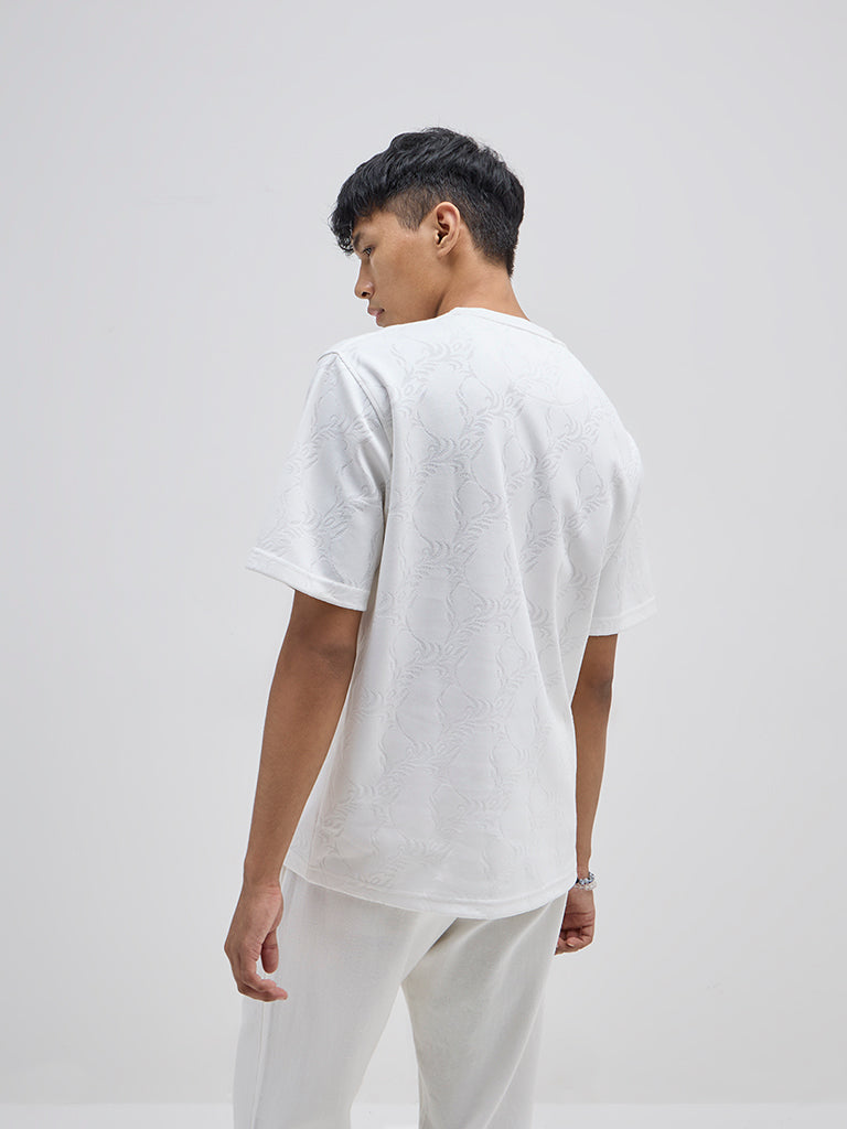ETA White Self-Patterned Relaxed-Fit Cotton T-Shirt