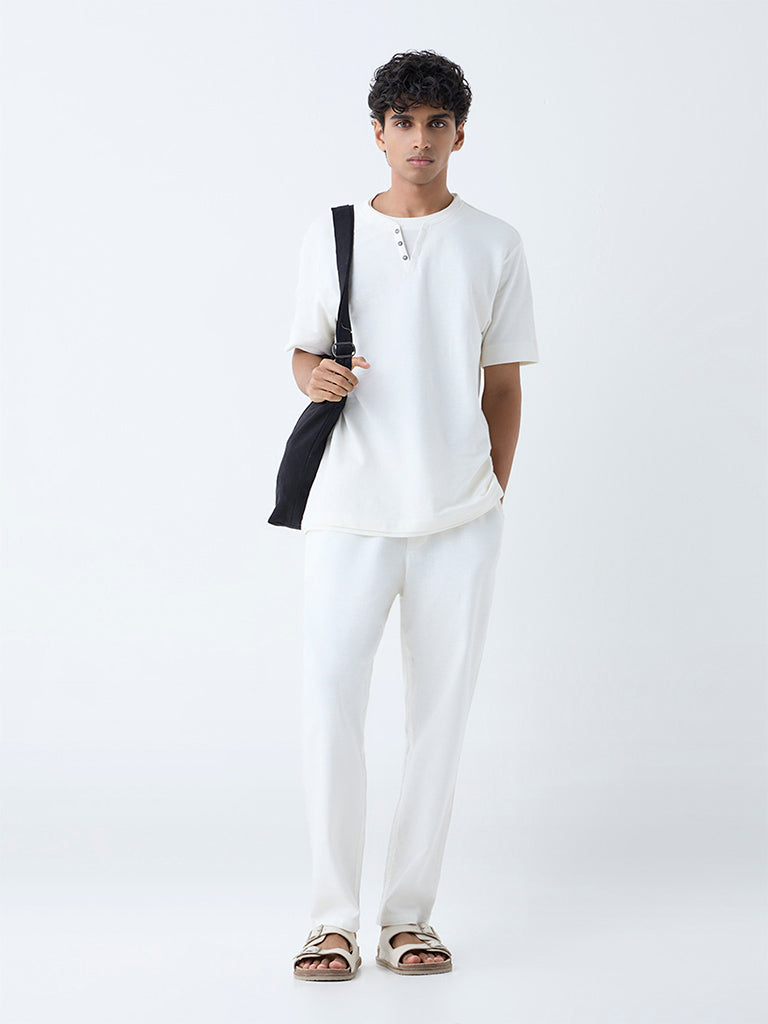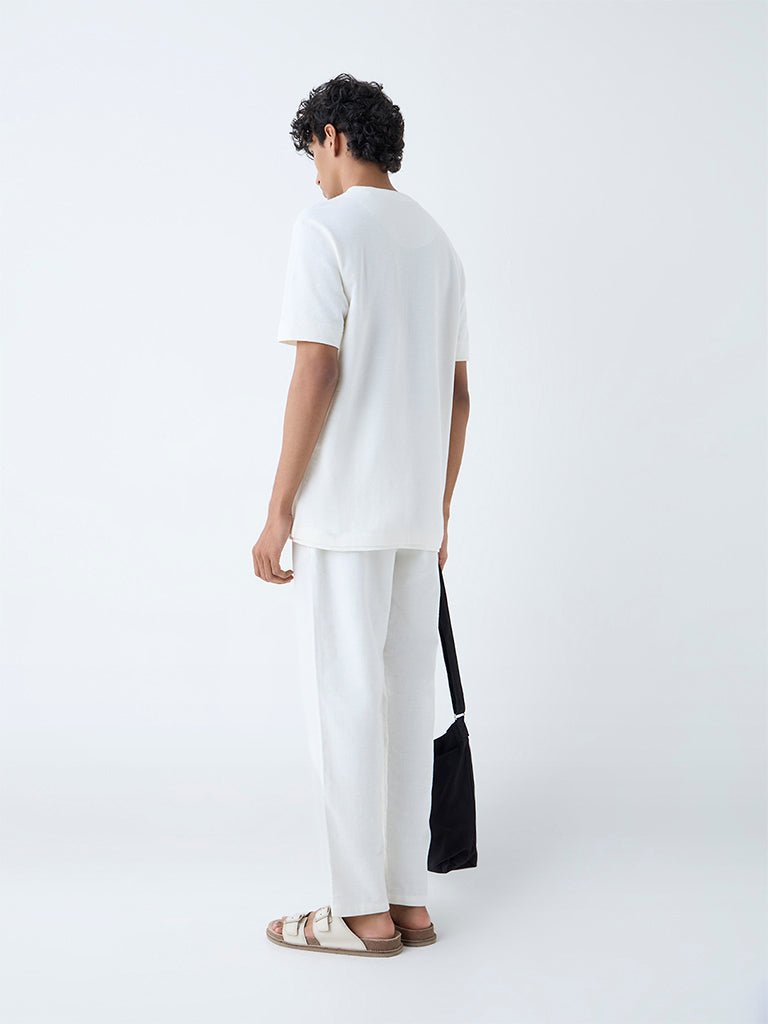 ETA White Solid Relaxed-Fit Cotton T-Shirt
