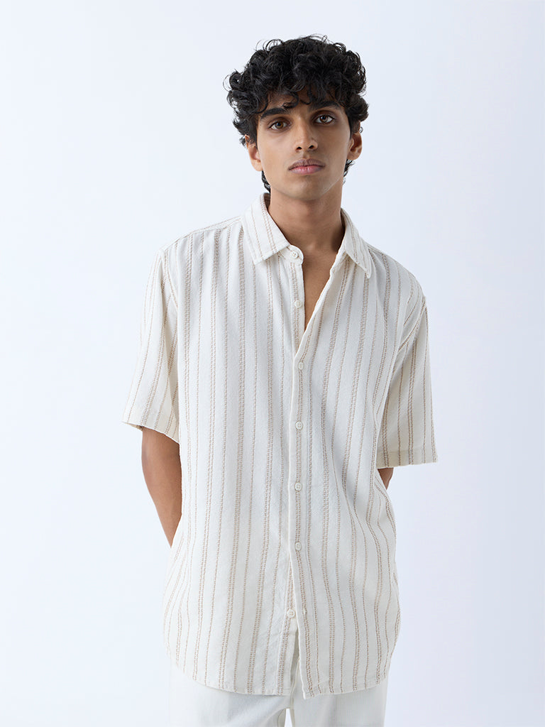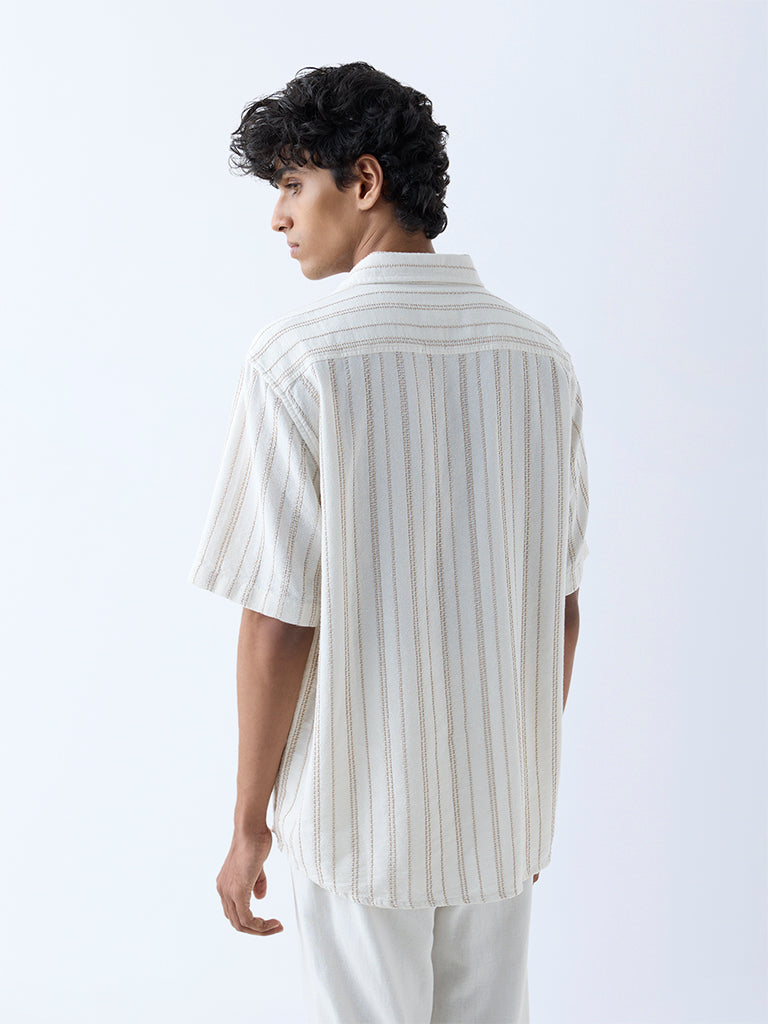 ETA White Stripe Patterned Relaxed-Fit Cotton Shirt