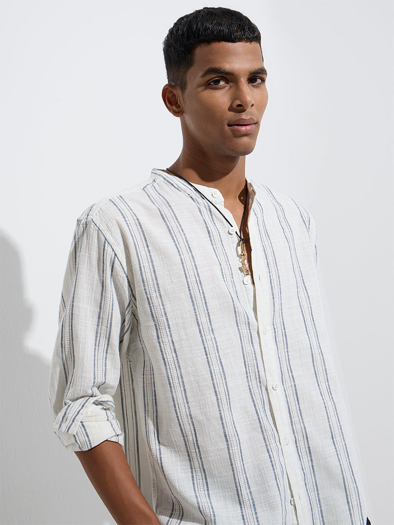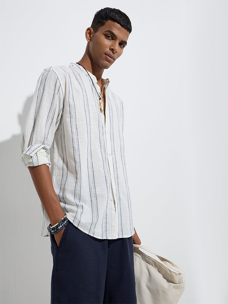 ETA White Striped Relaxed-Fit Cotton Shirt