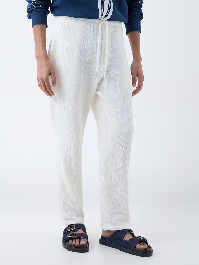 ETA White Textured Relaxed-Fit Mid-Rise Cotton Chinos