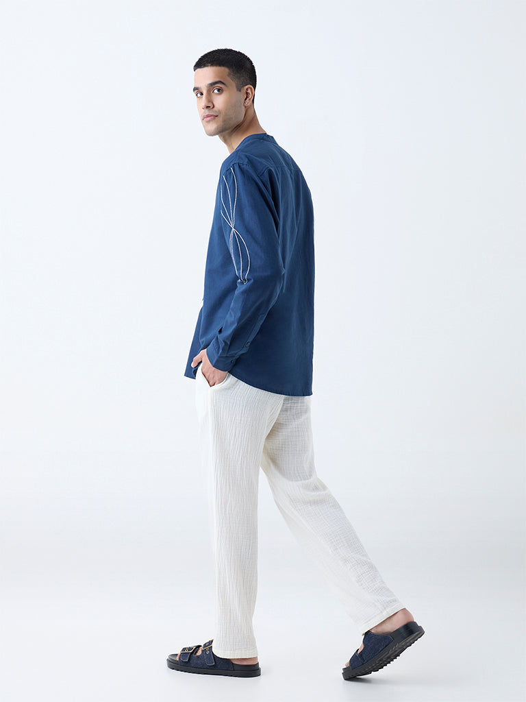 These white pants from Westside’s Young New Gamechanger initiative are designed by Harshita. an emerging talent from NIFT Bengaluru. Inspired by The Geoflow – inspired by nature’s curves and crafted geometry. flowing into modern design. The collection skillfully balances cultural elements with modern comfort. Crafted from a cotton fabric with a soft crinkle texture. these pants feature an elastic waistband with adjustable drawstrings and practical side pockets. making them ideal for everyday ease and effortless sophistication.