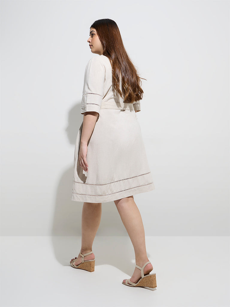Gia Beige Cotton-Blend A-Line Dress with Belt