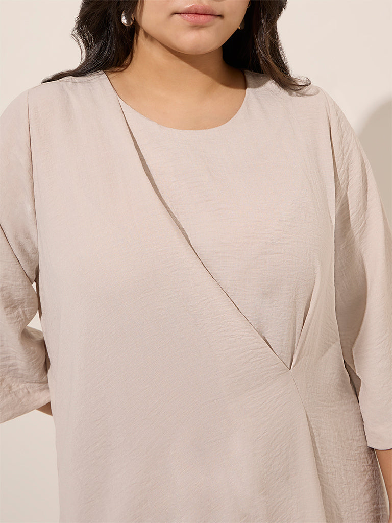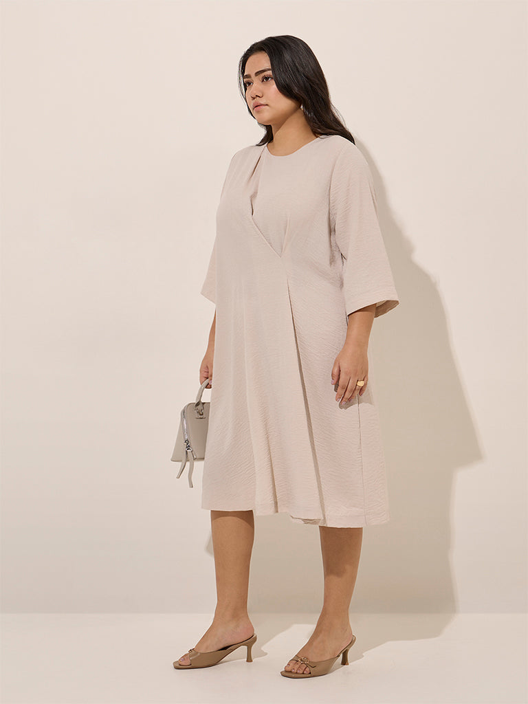 Elevate your everyday wardrobe with this beige A-line dress from Gia. Tailored from a crinkle-textured fabric for a breezy finish. it features a flattering overlap detail at the front and flared sleeves.
