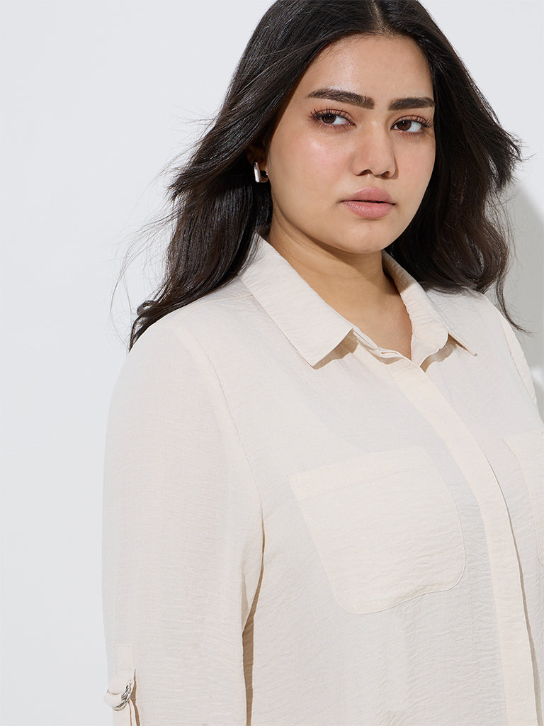 Be the first to review “Gia Beige Crinkle-Textured Shirt”