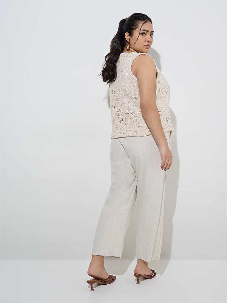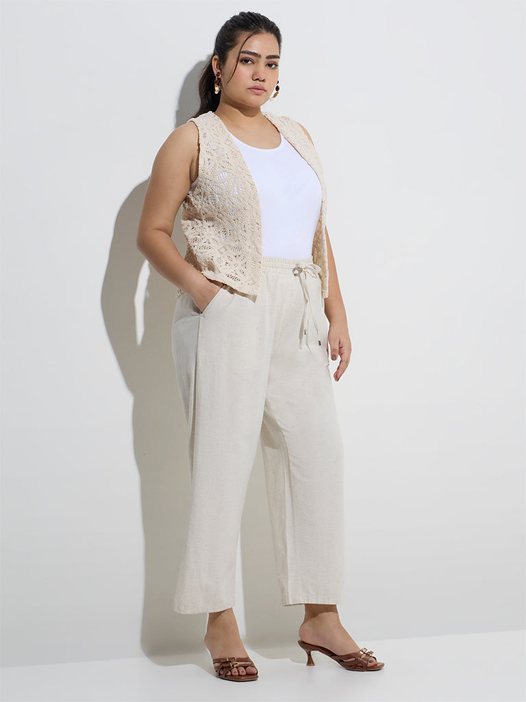 Gia Beige Crochet Design Cotton-Blend Shrug