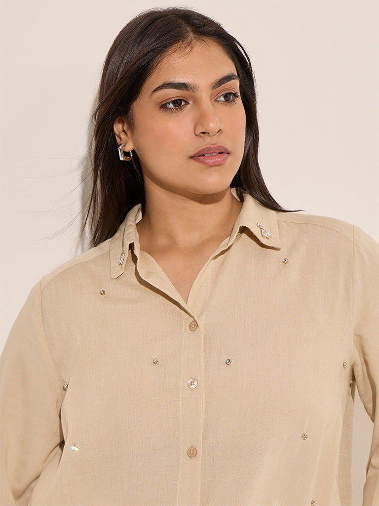 Be the first to review “Gia Beige Diamante Embellished Shirt”