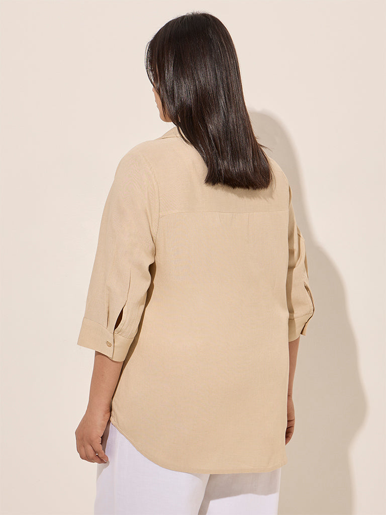 This beige shirt by Gia is decorated with diamante embellishments. Crafted from a cotton-blend fabric. it carries a spread collar which extends to a buttoned placket and 3/4th sleeves.