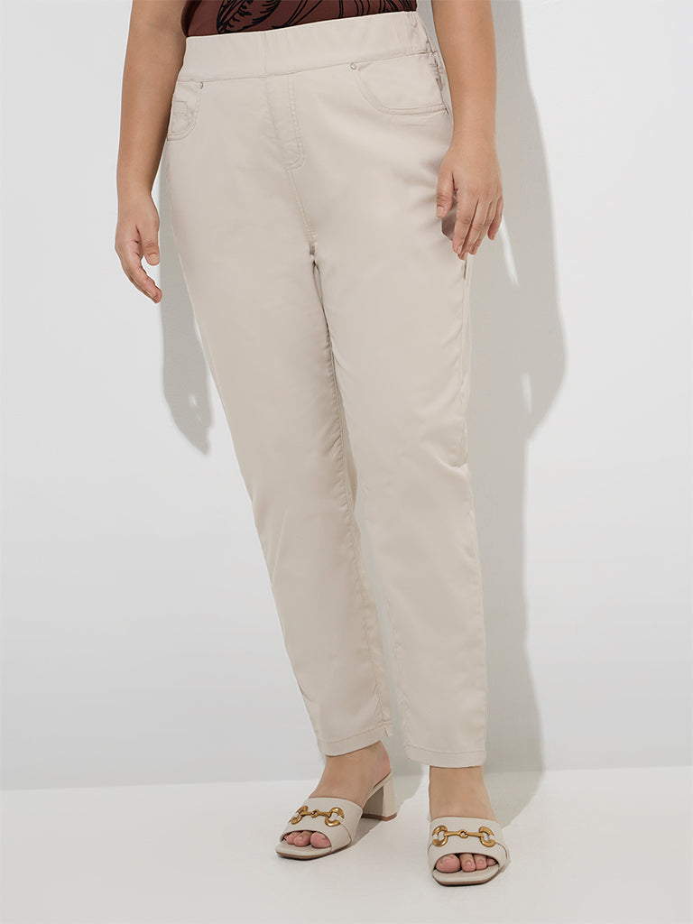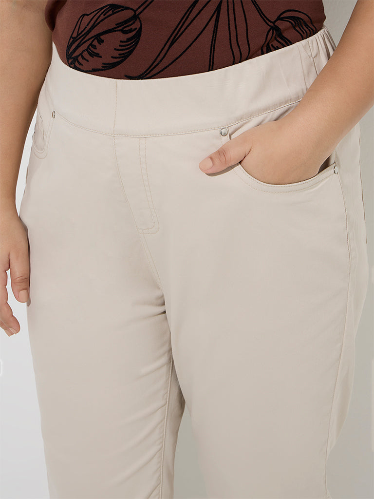 These beige solid jeggings from Gia are designed for all-day ease. Constructed from a cotton-rich fabric. they offer a snug yet comfortable fit that moves with you. The smooth elasticated waistband ensures a secure feel. while multiple pockets add a practical touch.