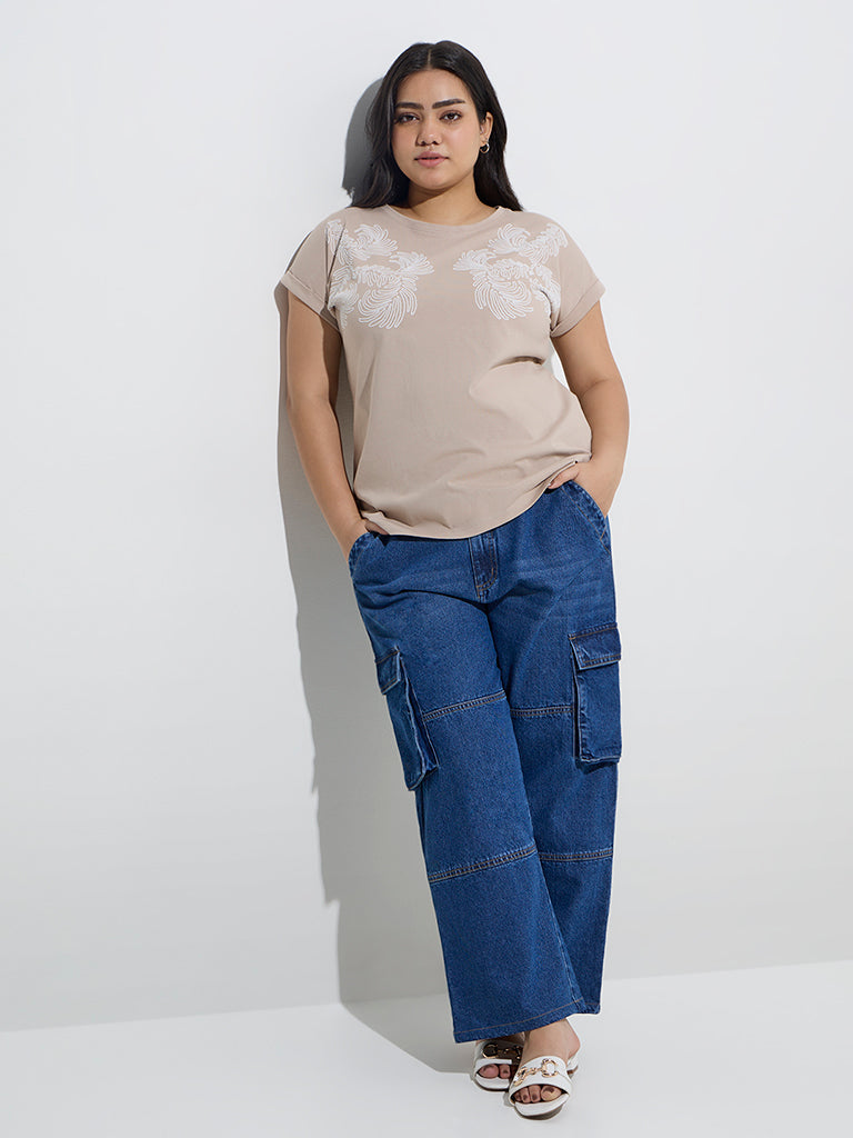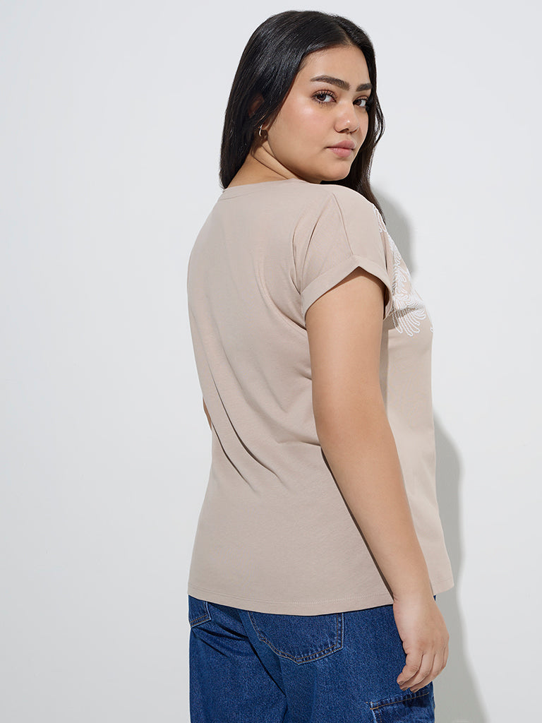 Be the first to review “Gia Beige Leaf Design Cotton T-Shirt”