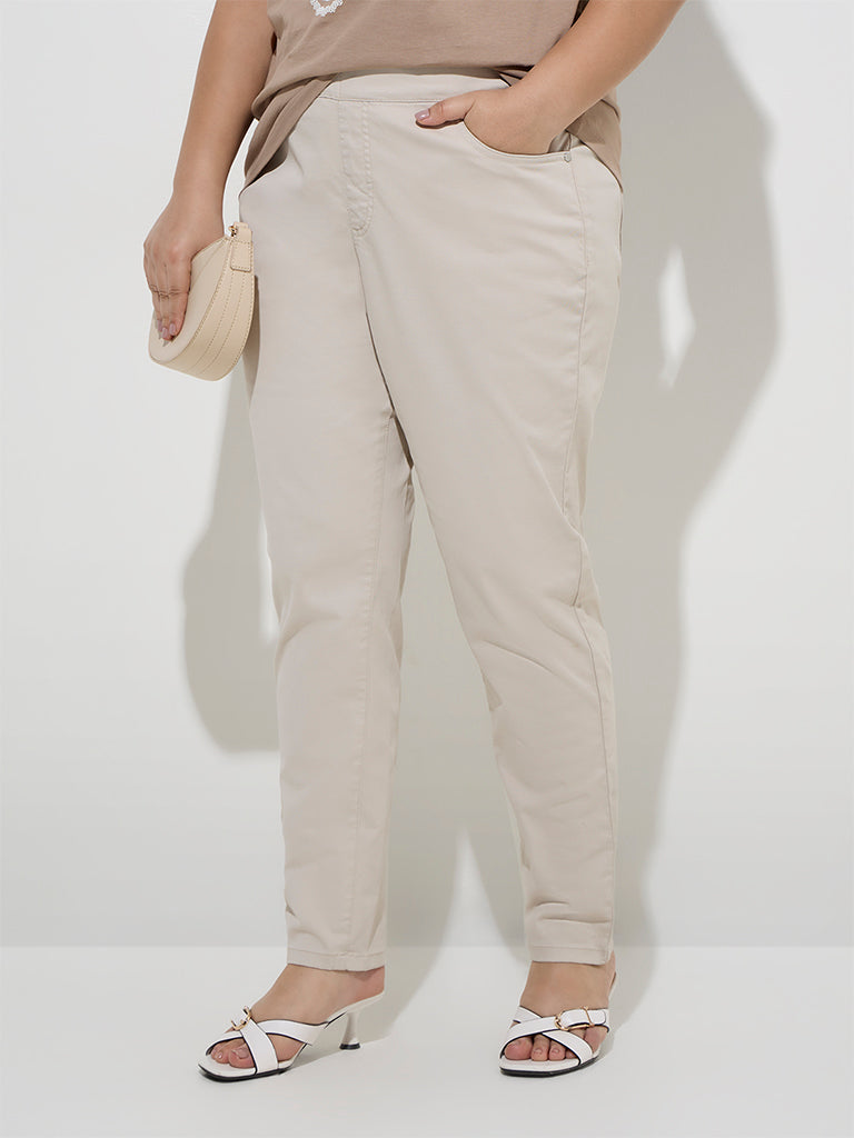 These beige solid jeggings from Gia are built from a sumptuous cotton fabric with a hint of stretch. offering a perfect balance of comfort and structure. Designed for a sleek fit. they feature an elasticated waistband and multiple pockets.