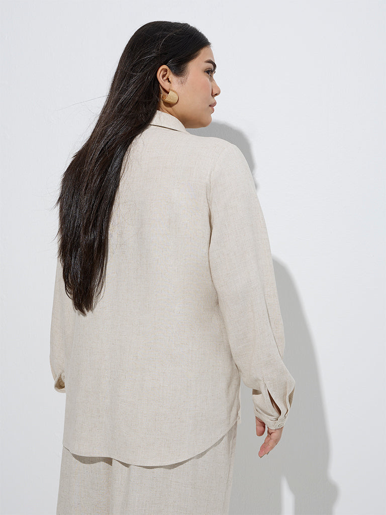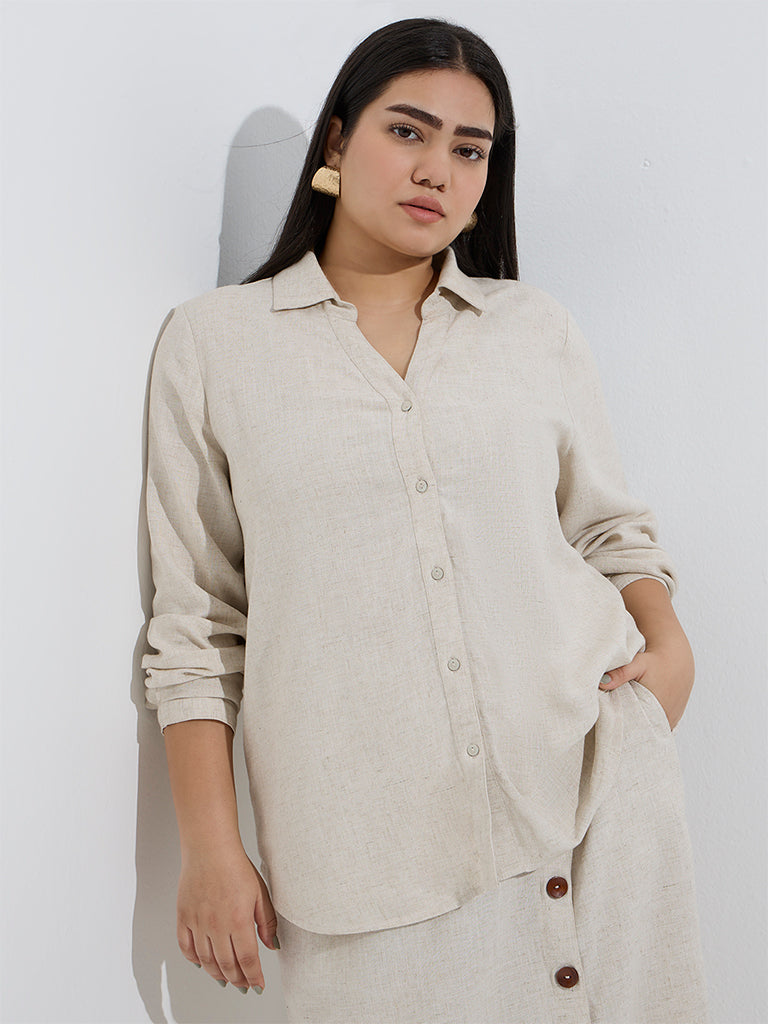 Gia introduces this beige shirt is styled with a spread collar. a button placket and full sleeves. Crafted from soft. breathable fabric. it serves as a versatile addition to your everyday casual wardrobe.