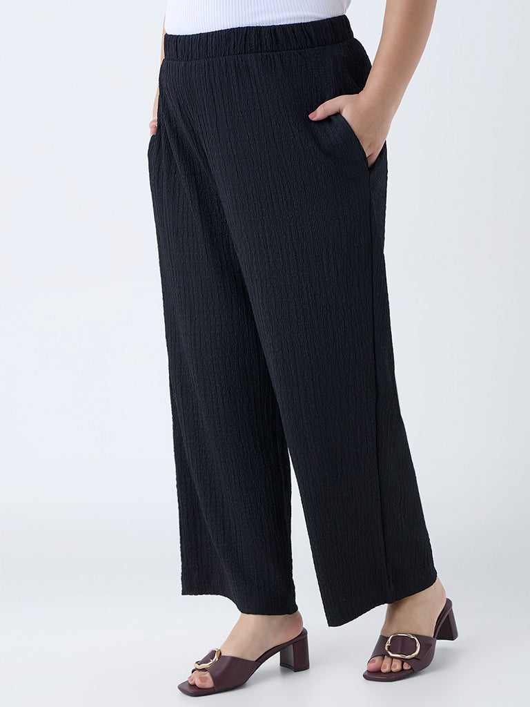 Gia Black Crinkle-Textured High-Rise Pants