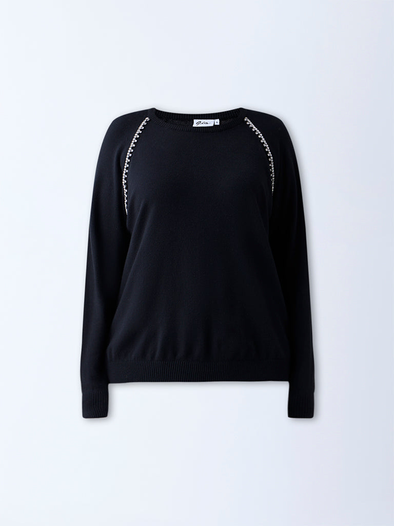 Gia Black Diamante-Detailed Sweater