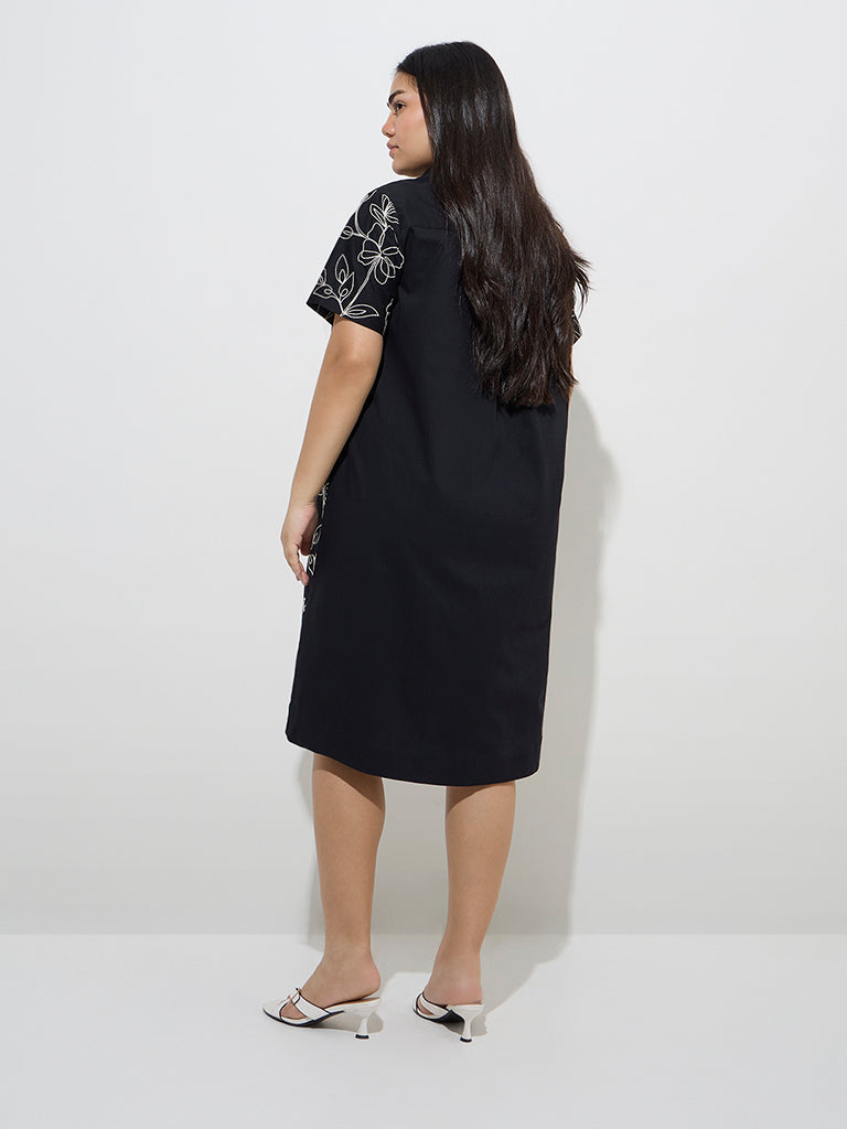 Gia Black Floral Embroidered Cotton A-Line Dress