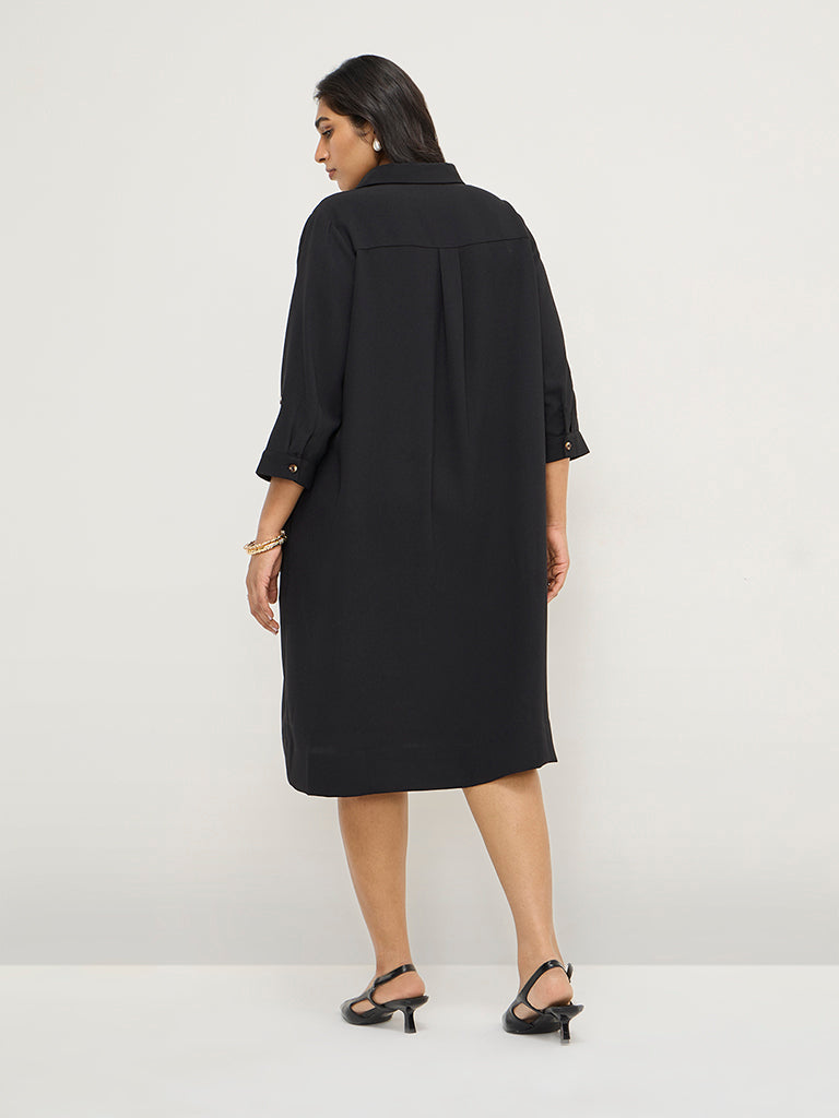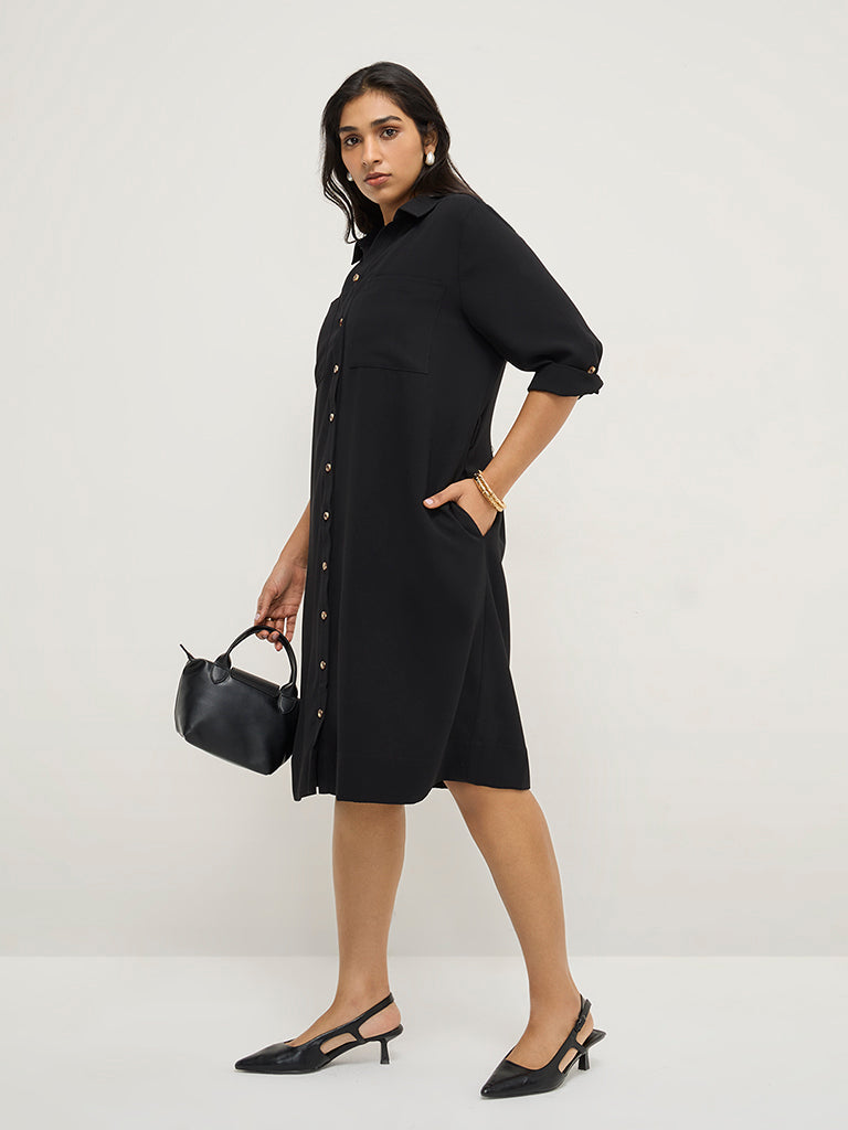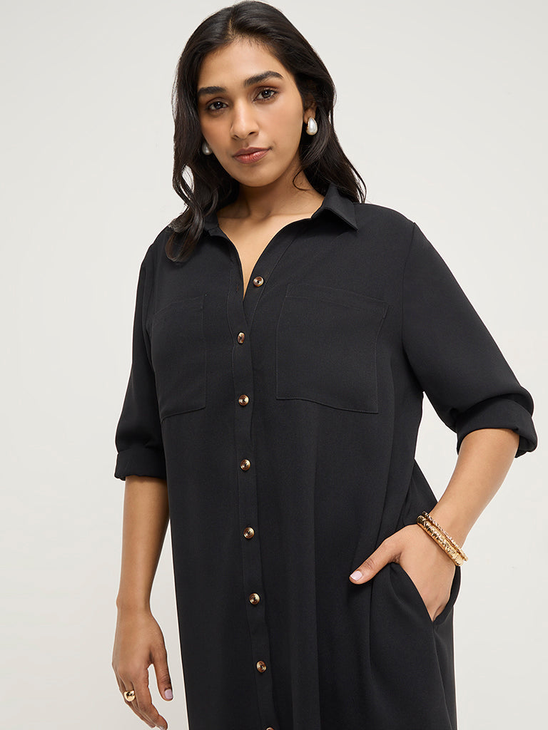 Gia Black High-Low Shirt Dress with Belt