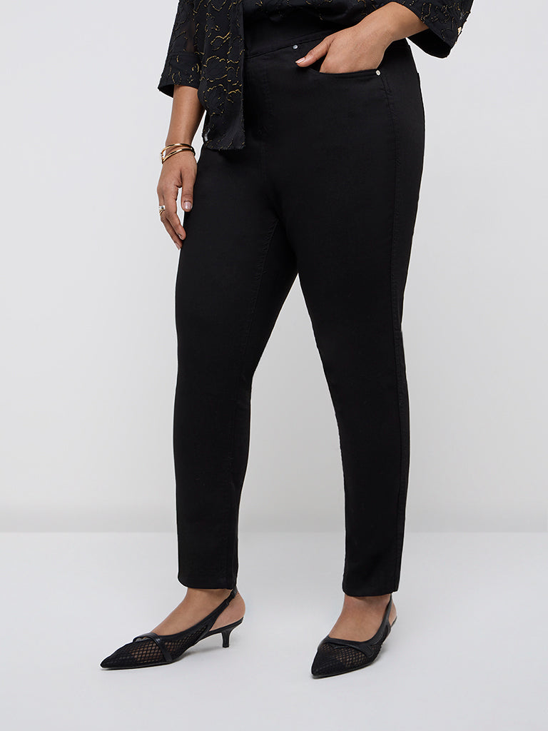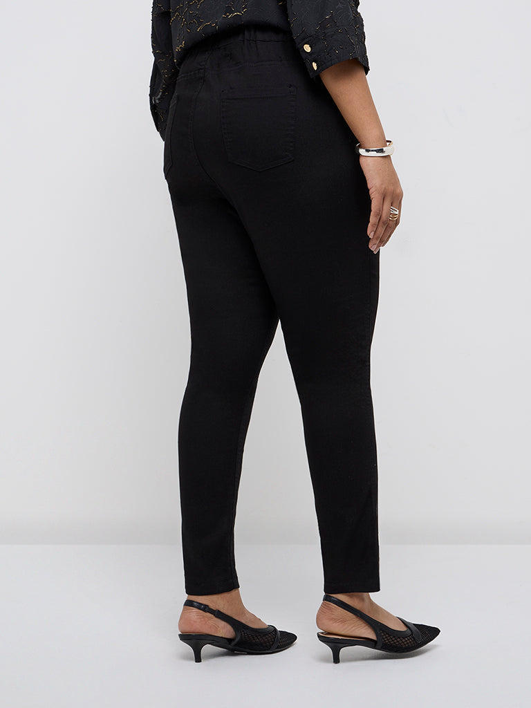 These black jeggings by Gia are crafted with soft and stretchable fabric. They offer a high-rise fit through their smooth elastic waistband and multiple pockets.