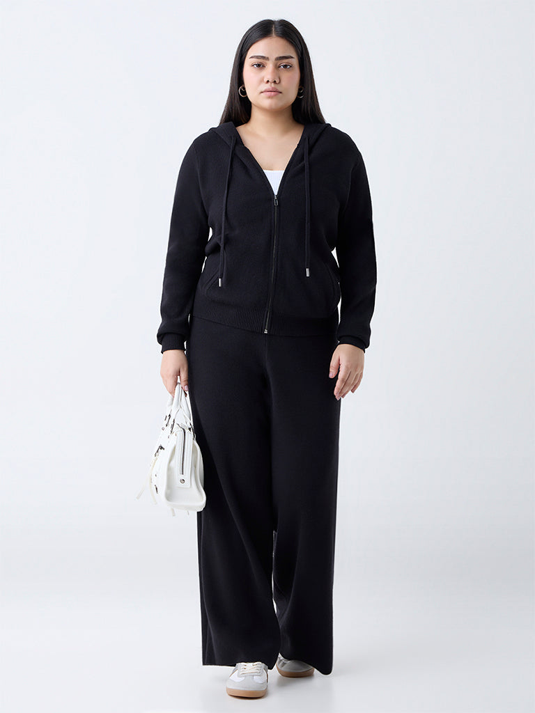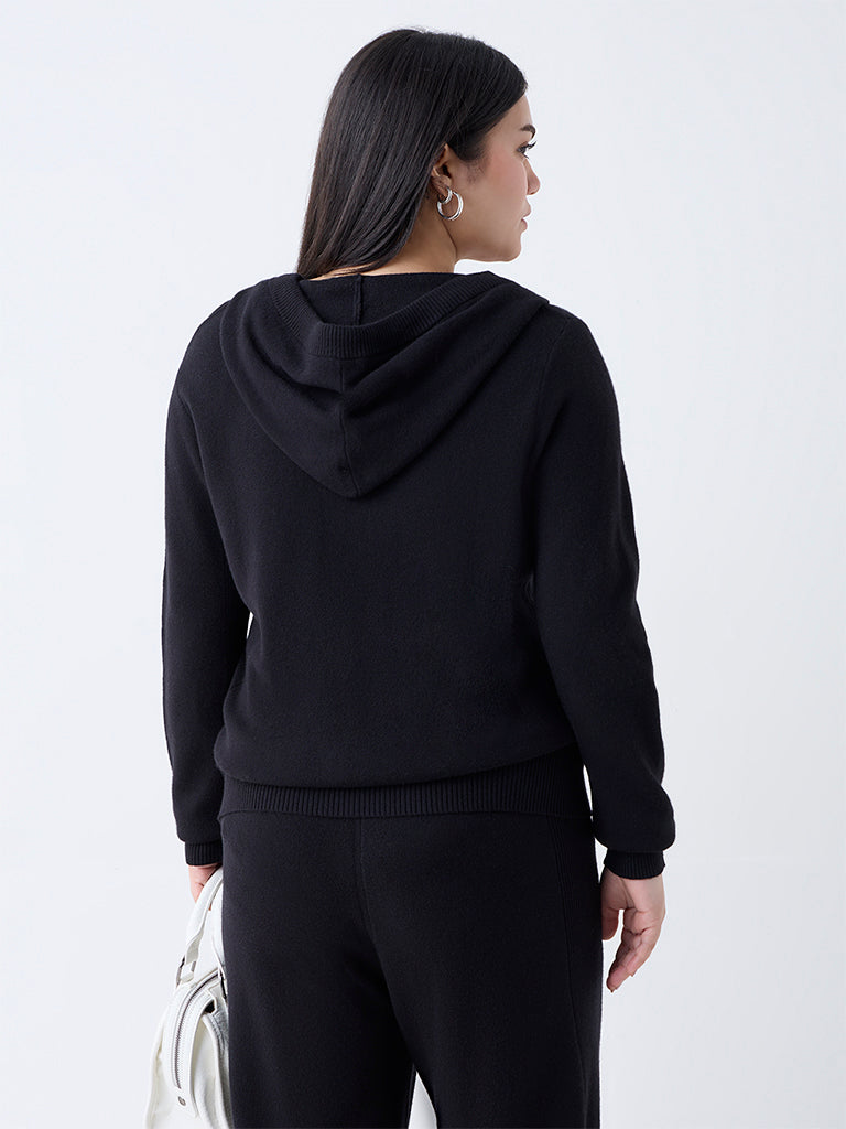 Upgrade your winter wardrobe with this black knit-textured jacket from Gia. Designed with a sleek zipper front. it features full sleeves and an attached hood with adjustable drawstrings for versatile styling. Finished with practical side pockets. it offers the perfect blend of comfort and contemporary appeal.