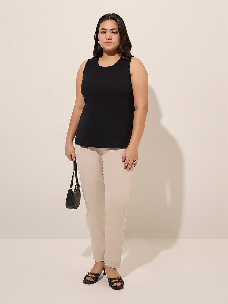 Gia brings you this black top designed with a ribbed texture. They are made with soft and stretchable fabric and include a round neck and a sleeveless cut.