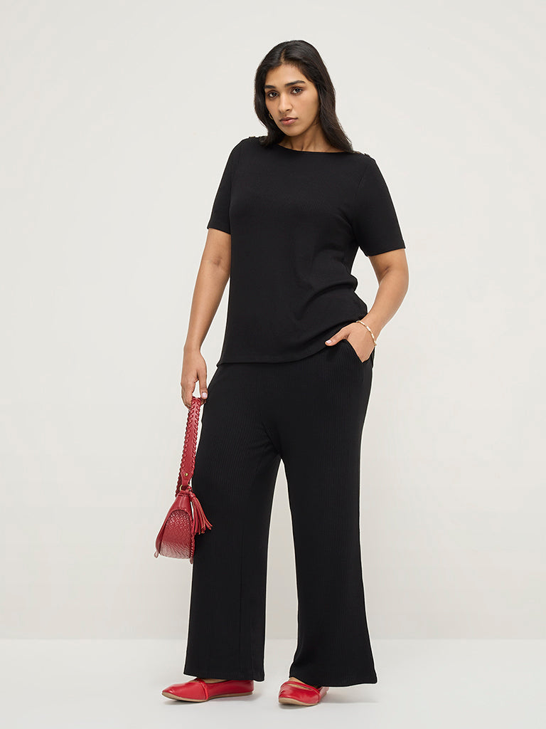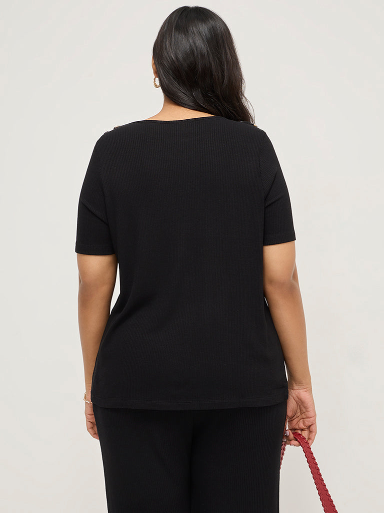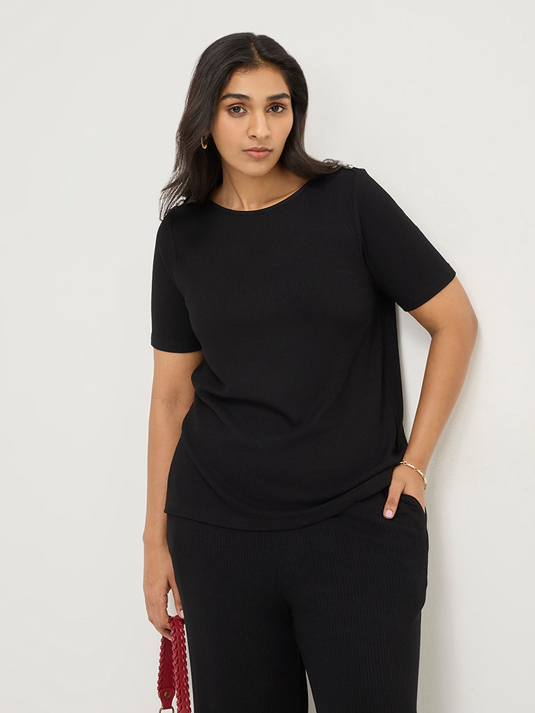 Gia Black Ribbed Textured T-Shirt