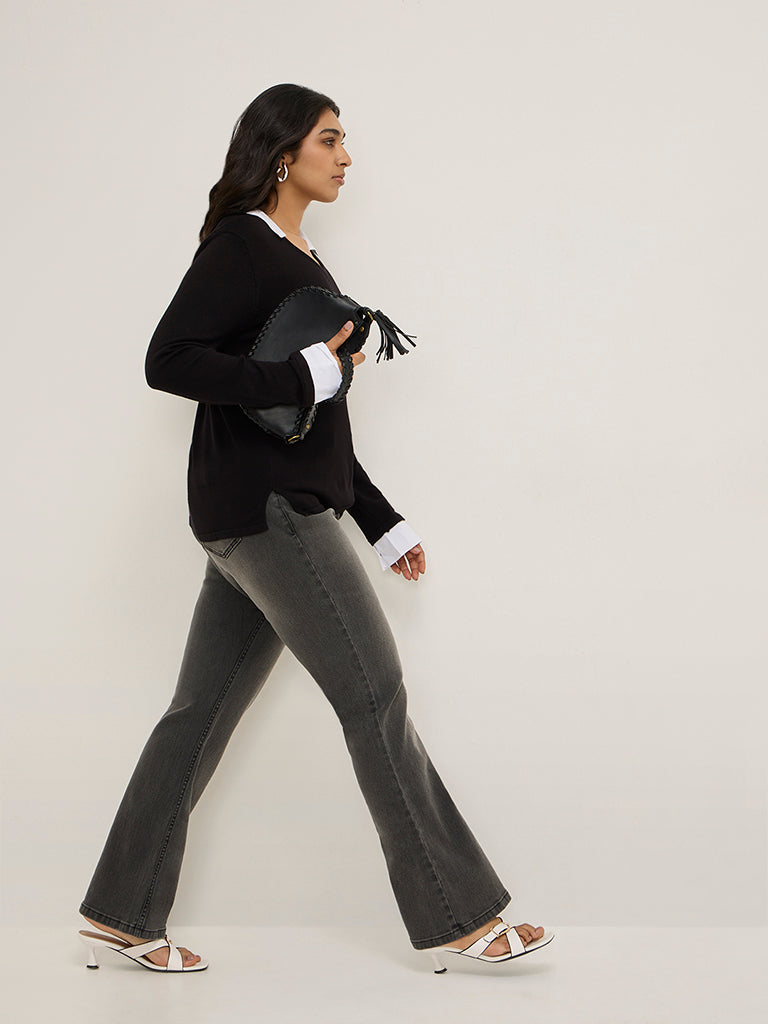This black t-shirt from Gia is made from a lightweight material with a V-neck collar and full sleeves for sumptuous comfort.