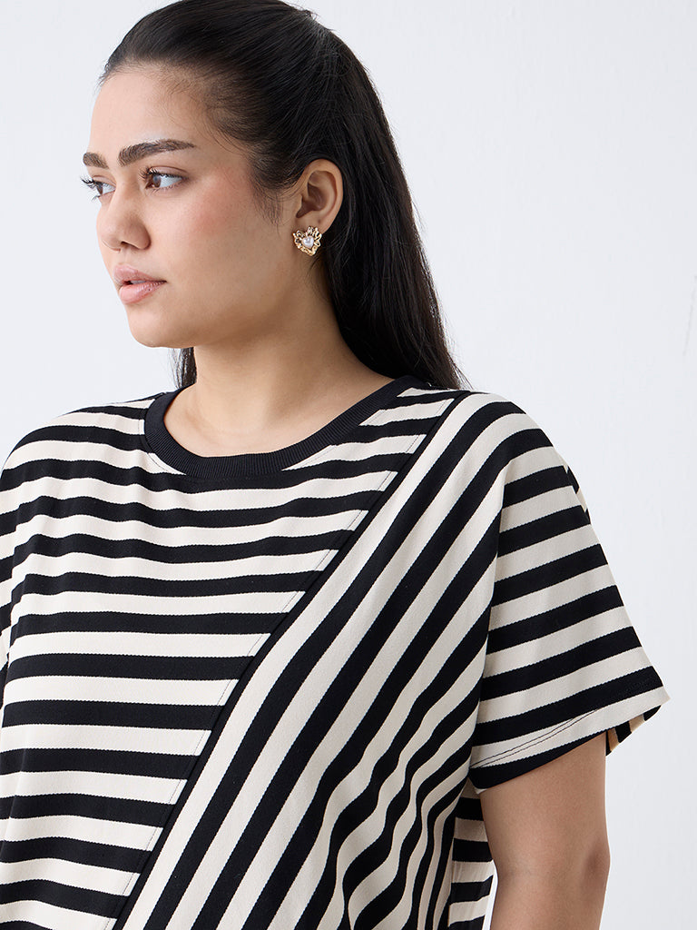 Bring a touch of Parisian-inspired charm to your everyday style with this black striped tee from Gia. The lightweight fabric drapes softly without clinging. while the round neckline and short sleeves create a flattering frame.