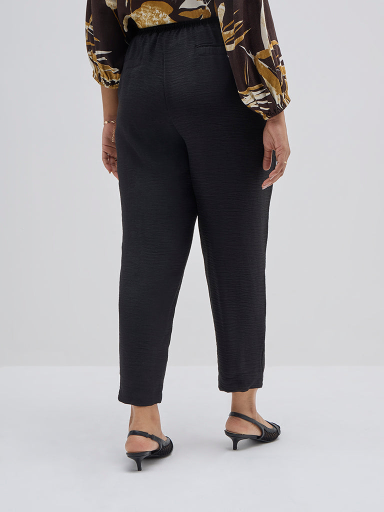 This pair of black. high-rise pants by Gia features a textured finish. Fabricated from a lightweight fabric. these stylish pants have an elasticated waist with drawstrings and side pockets.