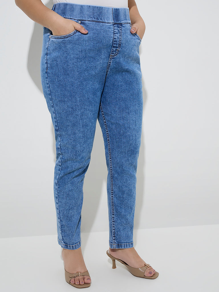 Gia’s blue jeggings are crafted from a soft cotton-blend fabric for a comfortable fit. Designed in a high-rise silhouette. they feature an elasticated waistband for ease and multiple pockets for practicality.
