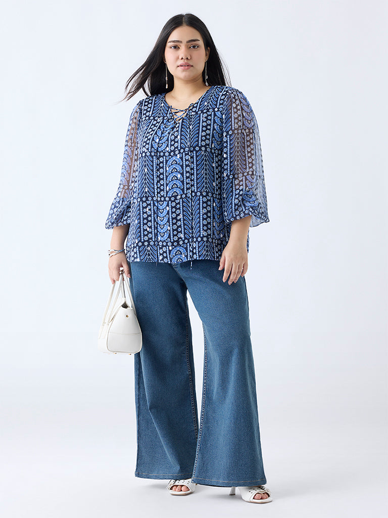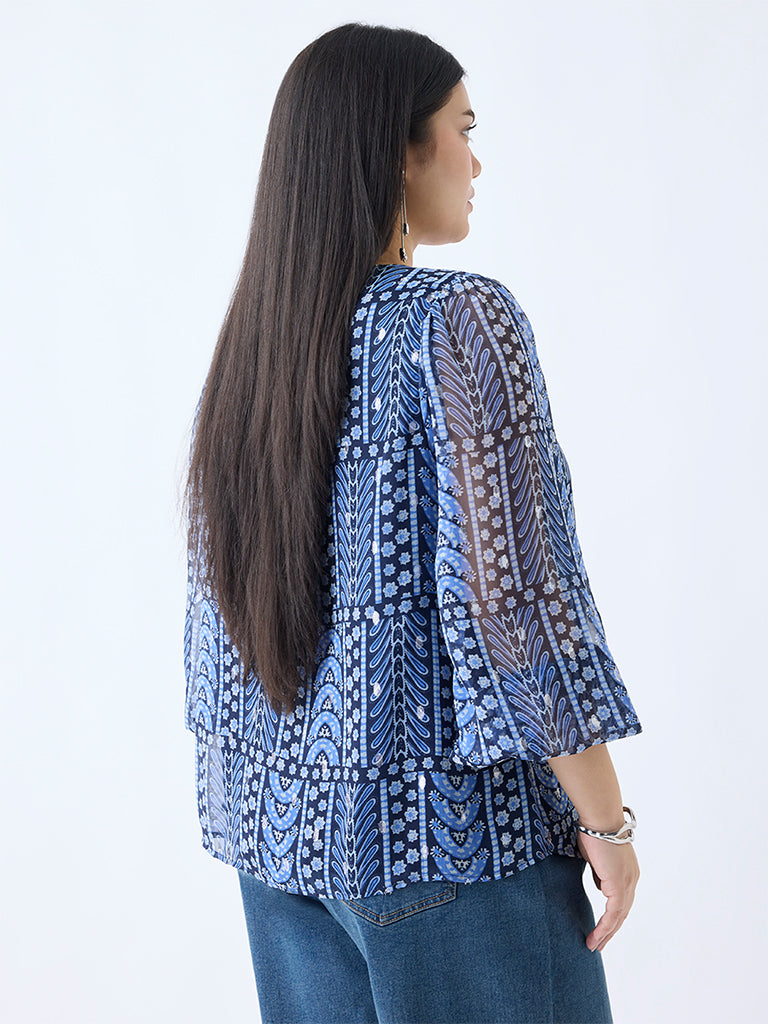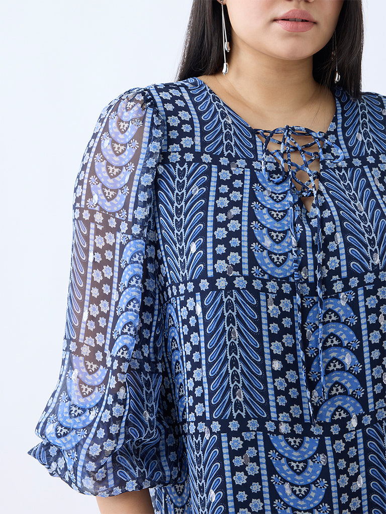 Add a bit of bohemian charm to your everyday collection with this blue top from Gia. Crafted from a lightweight fabric. it boasts an array of prints all over for added charm while the tie-up detail at the neck adds a chic finish.