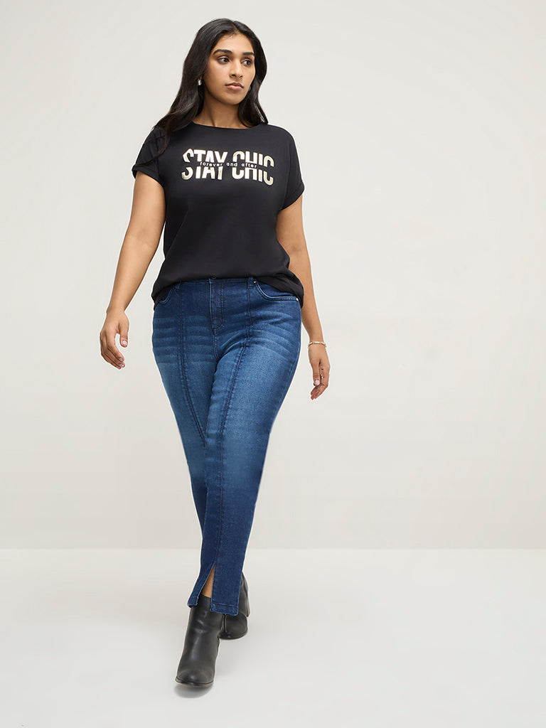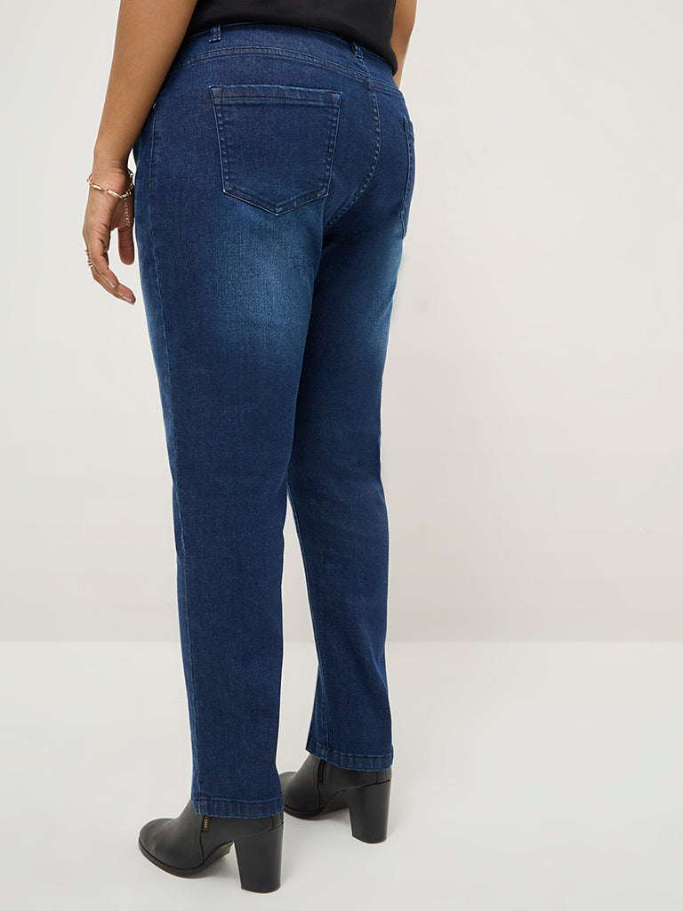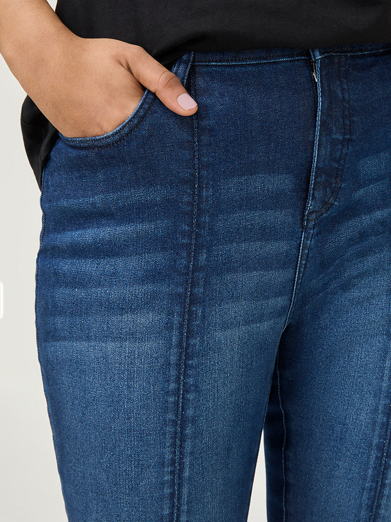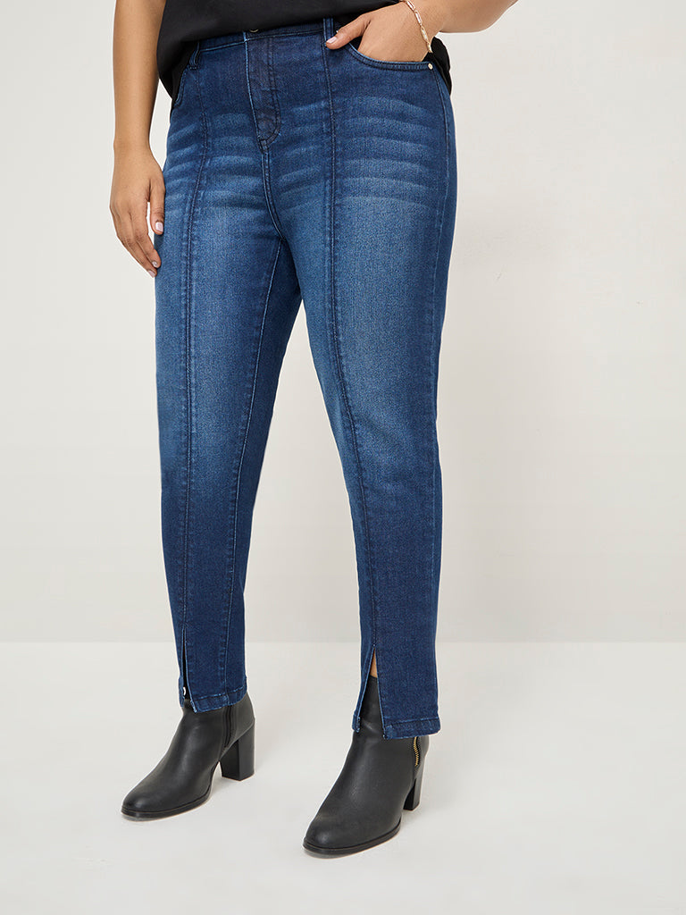 These blue jeans by Gia offer a stylish high-rise fit. Crafted in a cotton-rich blend. the bottom wear carries a smooth buttoned waistband. zipper fly and multiple pockets. The slits featured at the bottom of these jeans add a stylish finish.