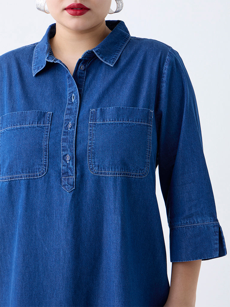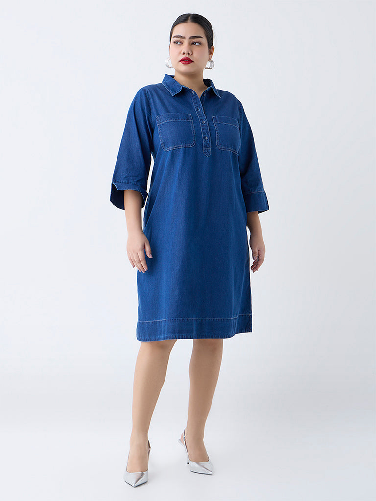 Perfect for weekend outings or semi-polished day edits. this blue dress by Gia is a modern take on a timeless denim staple. Designed with a classic collar and button placket. it offers structured tailoring while remaining effortlessly comfortable. The three-fourth sleeves and chest pockets offer a stylish finish.