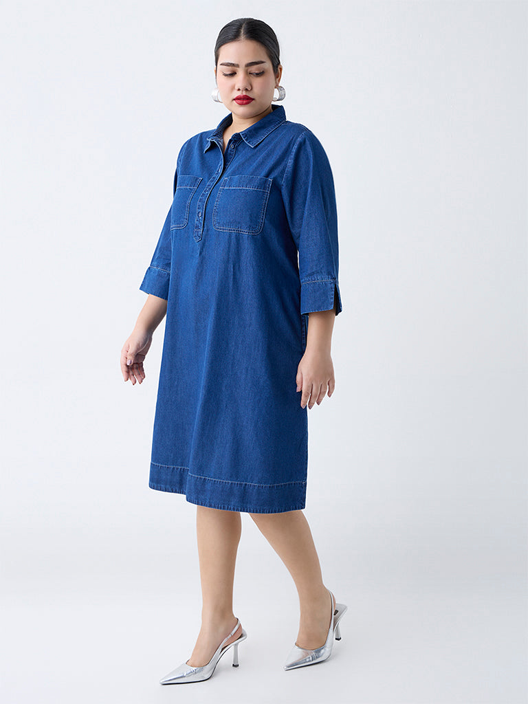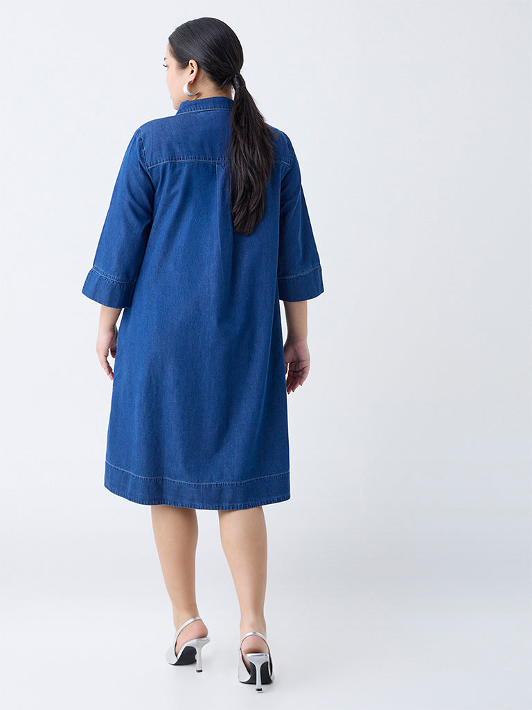 Gia Blue Solid Denim A-Line Dress