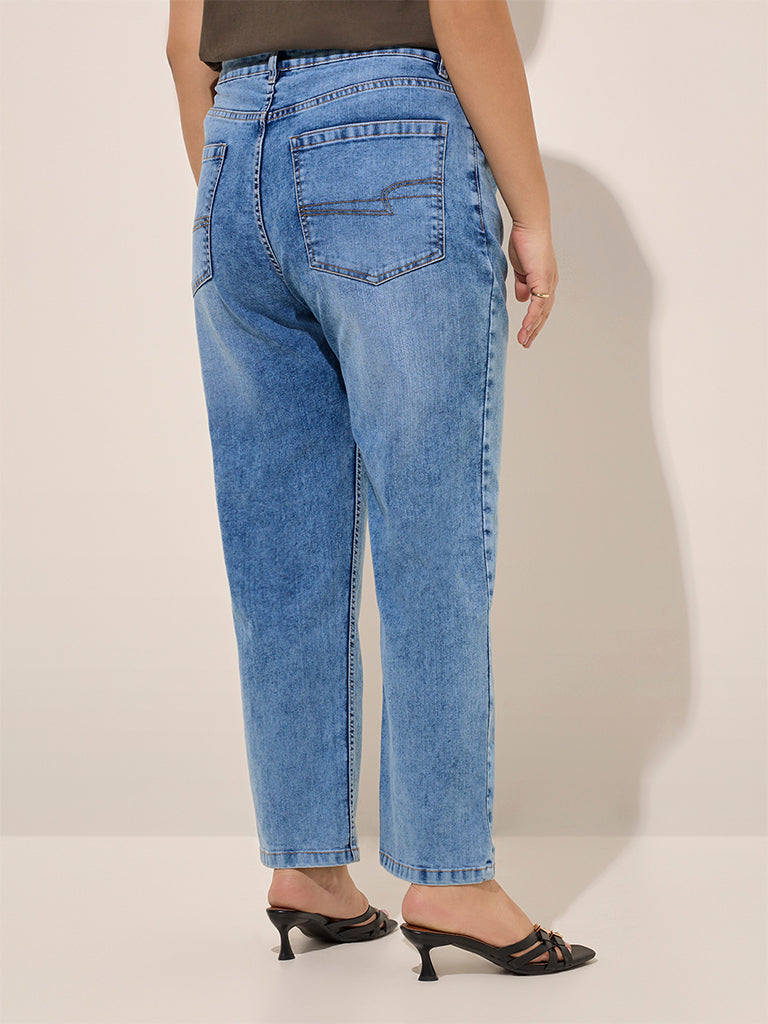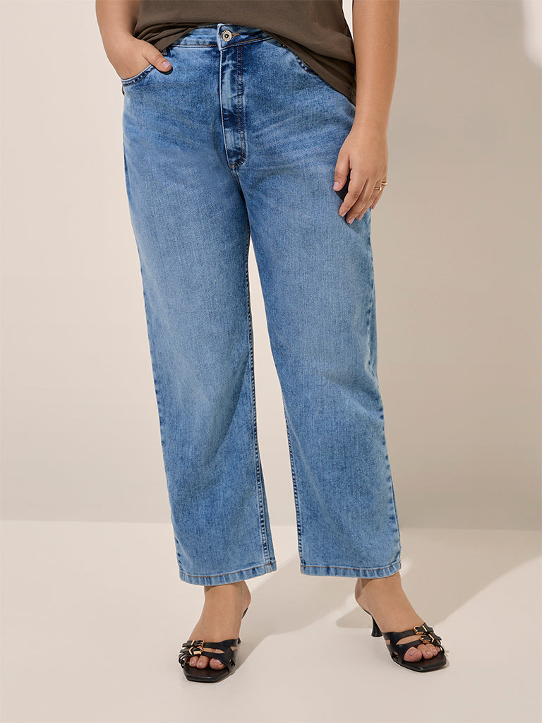 These blue mid-rise jeans from Gia offer comfort and casual style. With a straight fit. classic button closure. and subtle fade detailing. they pair effortlessly with tees or blouses for a versatile look. Crafted from soft. breathable fabric. they ensure all-day ease.