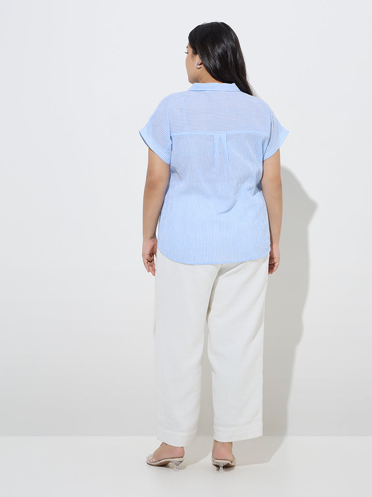 Milled from a cotton-rich fabric. this blue shirt from Gia highlights striped patterns. It carries a classic collar that extends to a buttoned placket and dolman sleeves. The flap pockets at the chest lend a stylish touch.