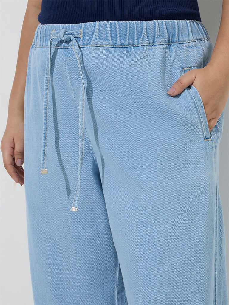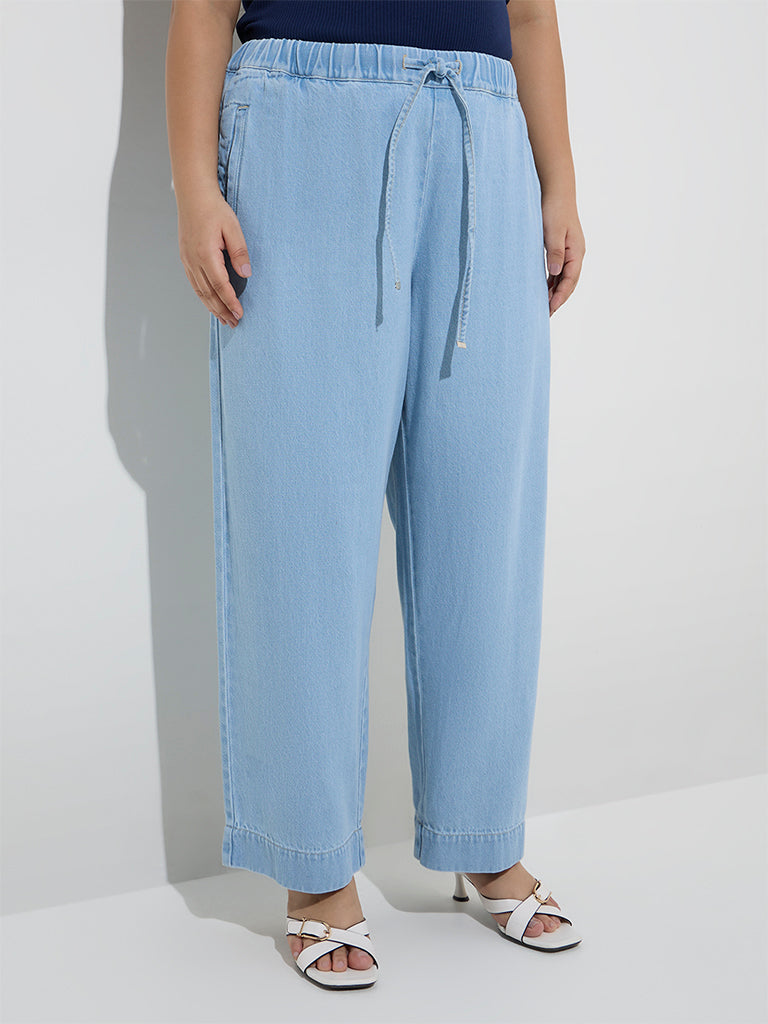 These blue denim pants from Gia showcase a faded look for a subtle. worn-in effect. Crafted from pure cotton. they come with an elasticated drawstring waistband for a secure fit. while multiple pockets add everyday practicality.