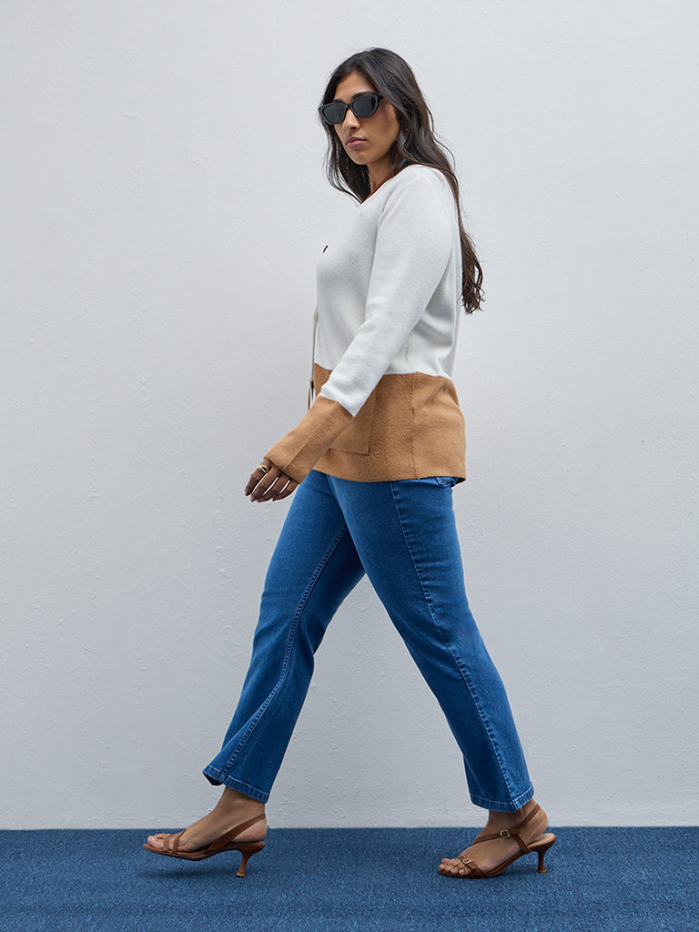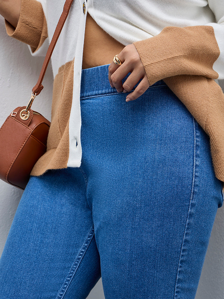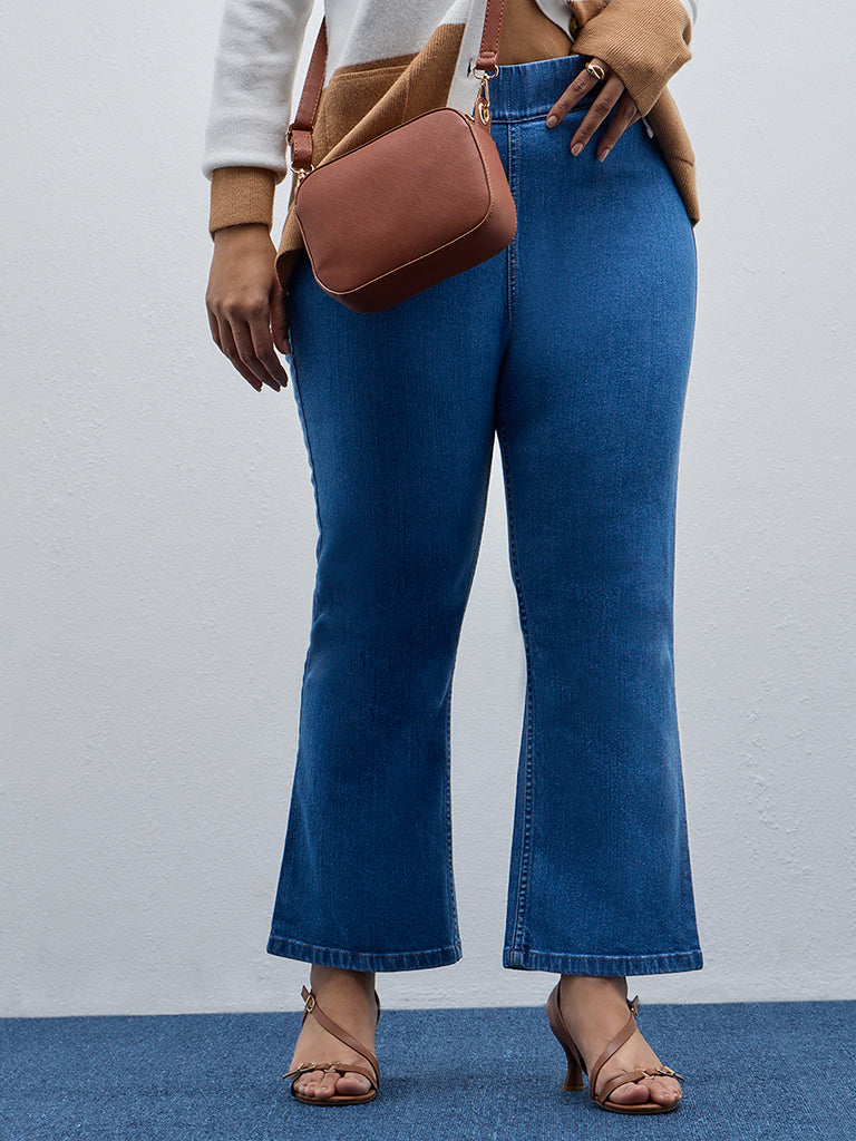 Gia launches these blue denim jeggings in a bootcut design. Crafted with soft and breathable fabric. the high-rise bottom wear carries a smooth elastic waistband and back pockets for added ease.