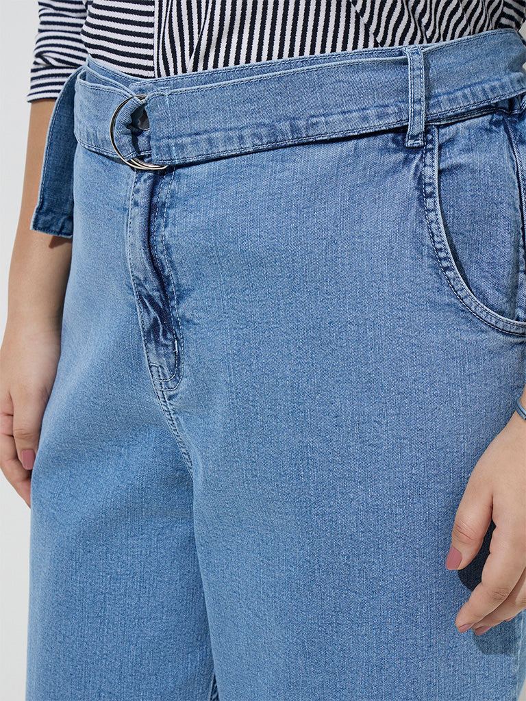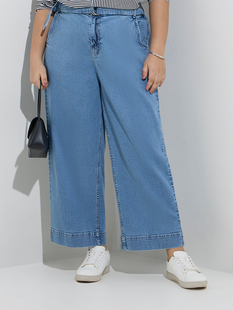 Gia Blue Wide-Leg High-Rise Jeans with Belt