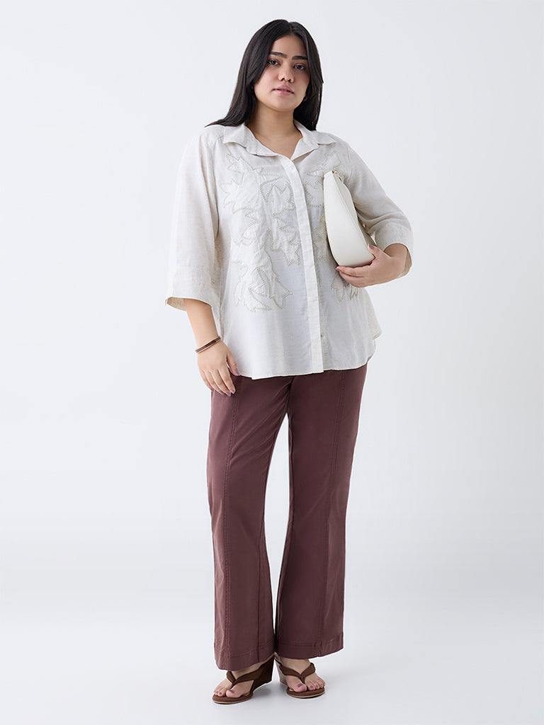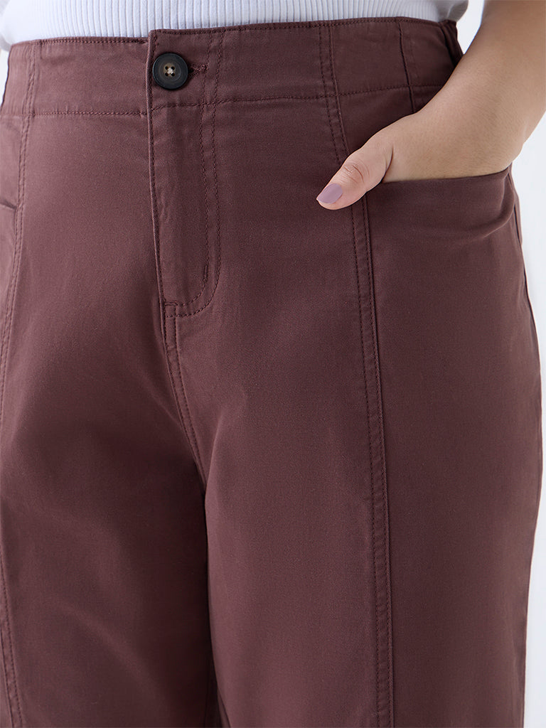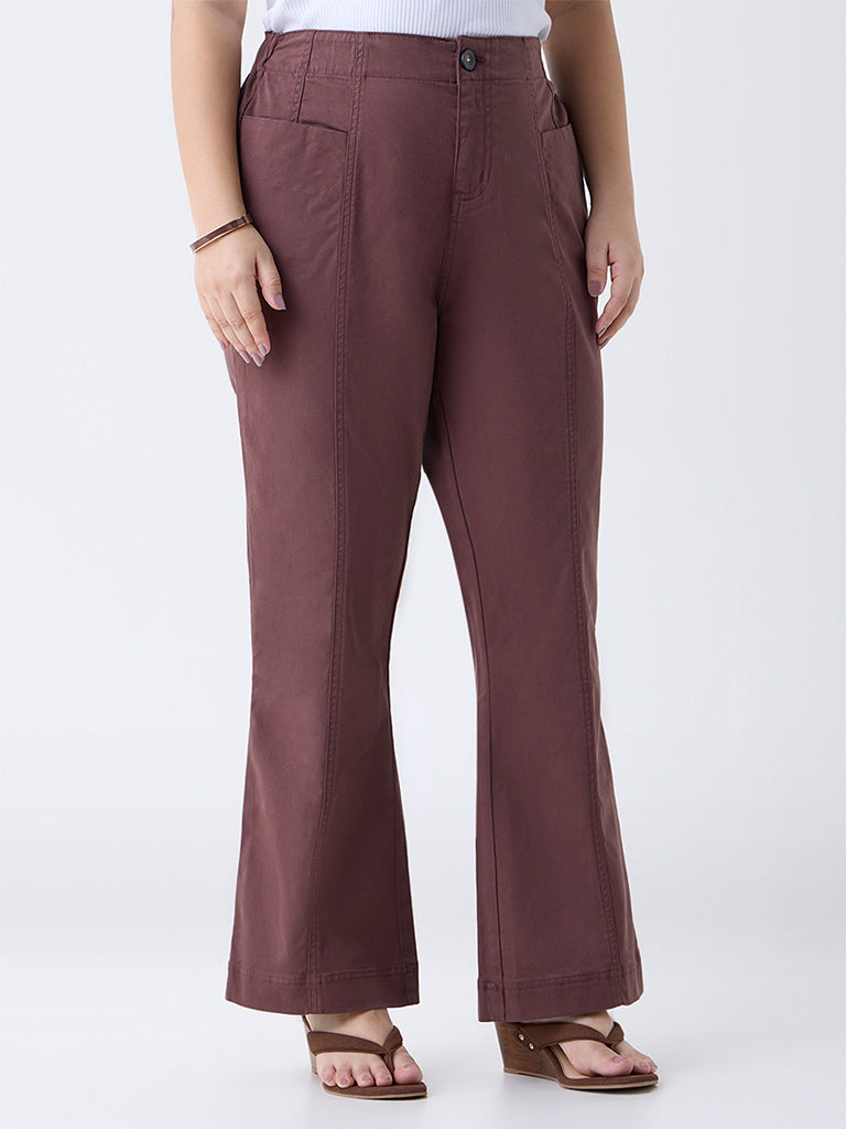 Gia Brown Bootcut High-Rise Cotton-Blend Trousers