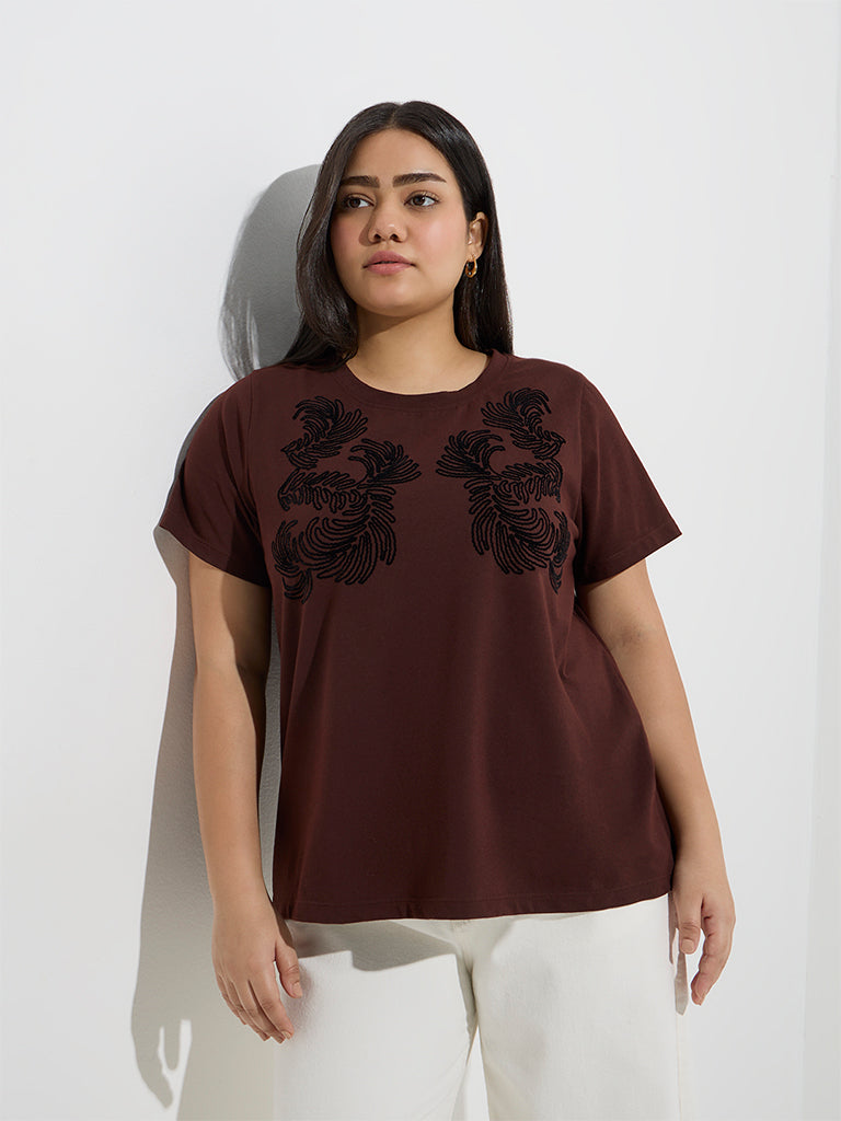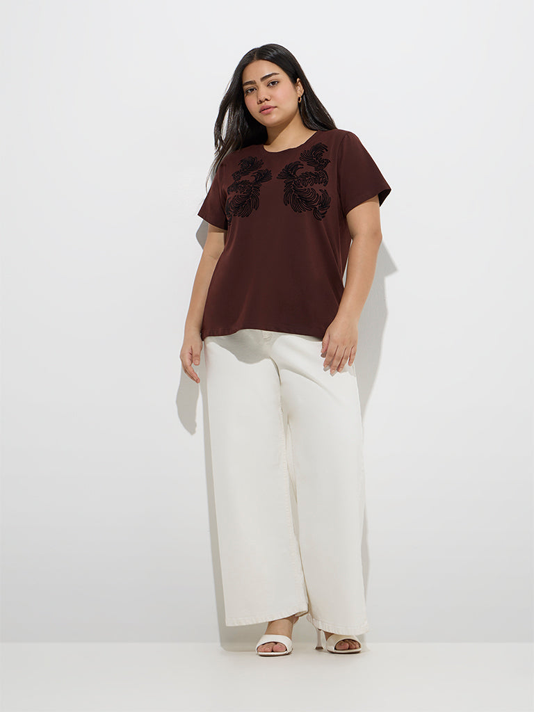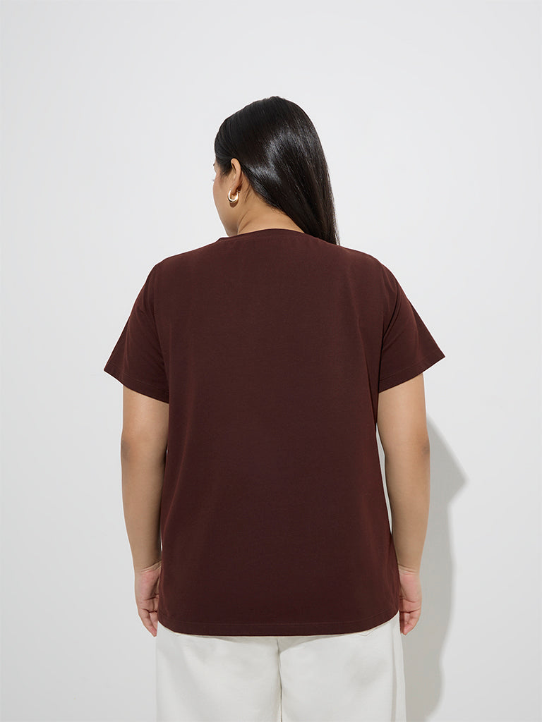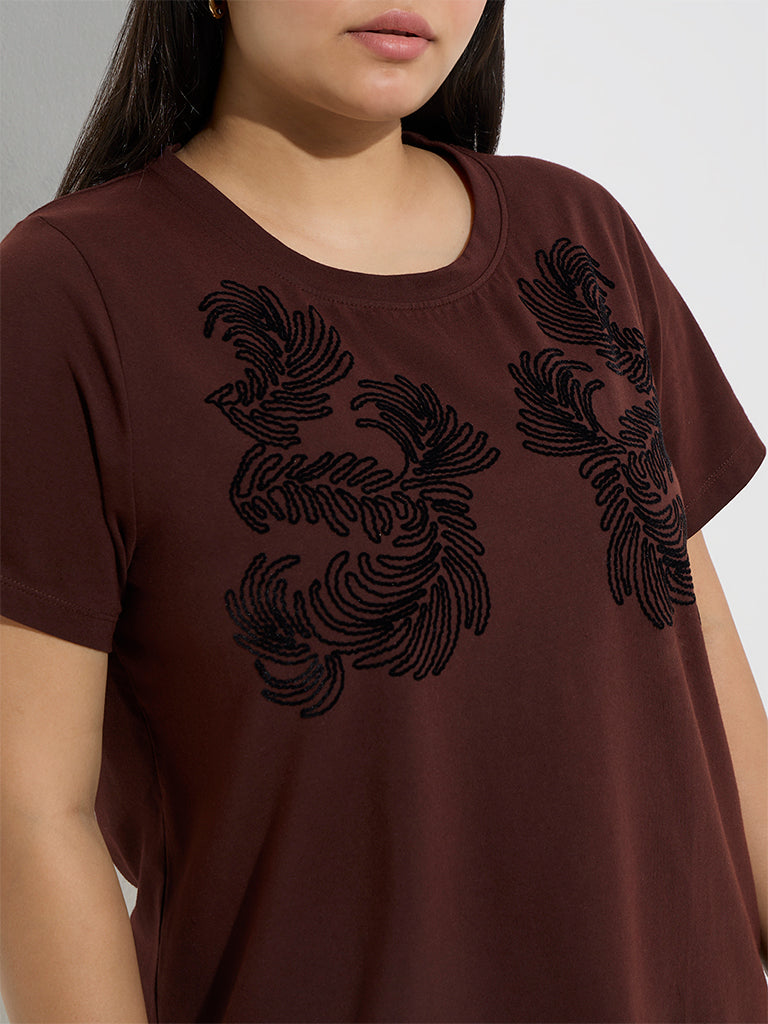 Gia Brown Botanical Design Cotton T-Shirt